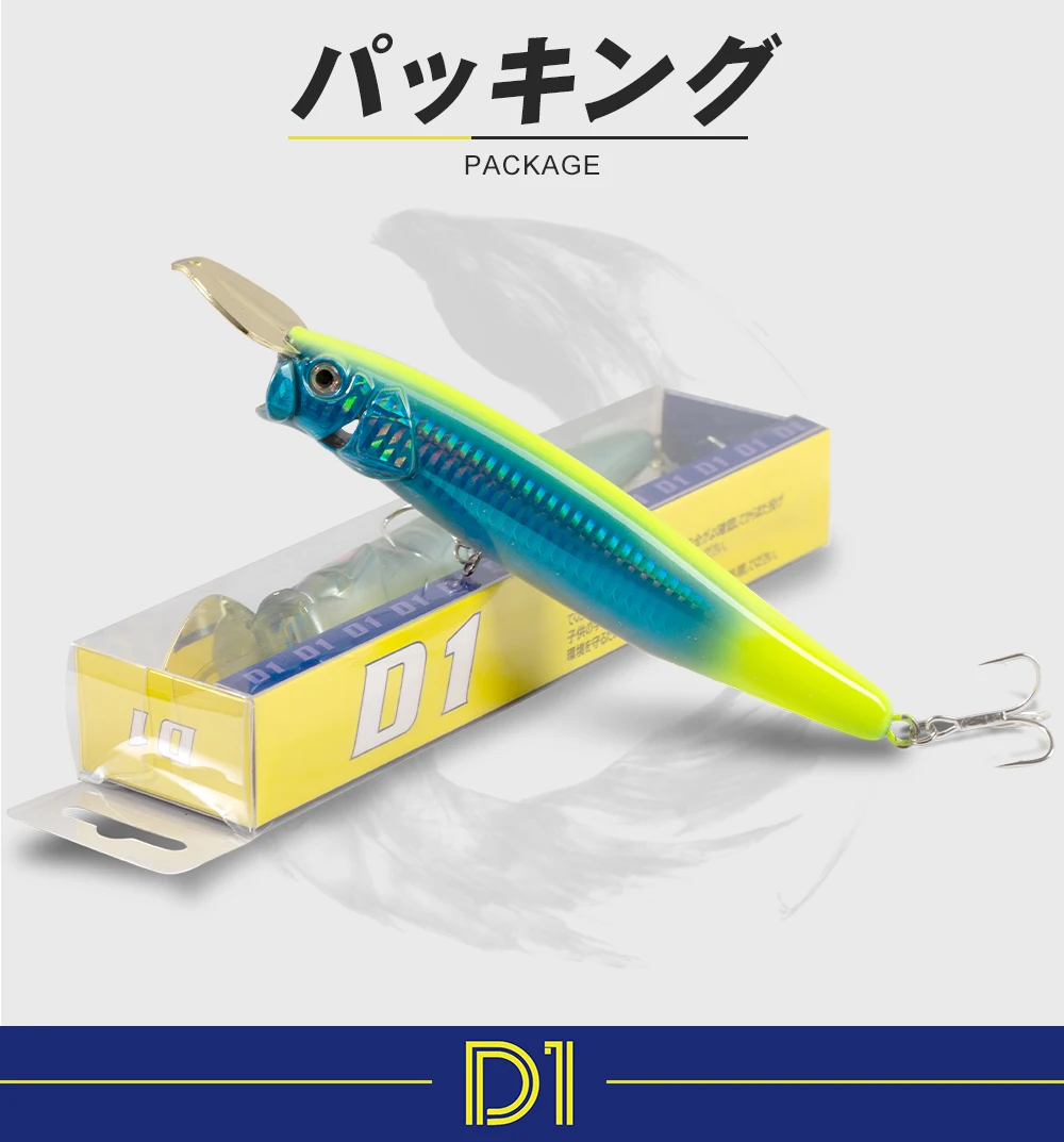 Señuelo de pesca D1 Riser Bait Popper, 65mm, 85mm, 150mm, señuelo hundido, labio de Metal, aparejos de pesca en el mar, acción de salpicaduras, señuelos falsos duros DT5004