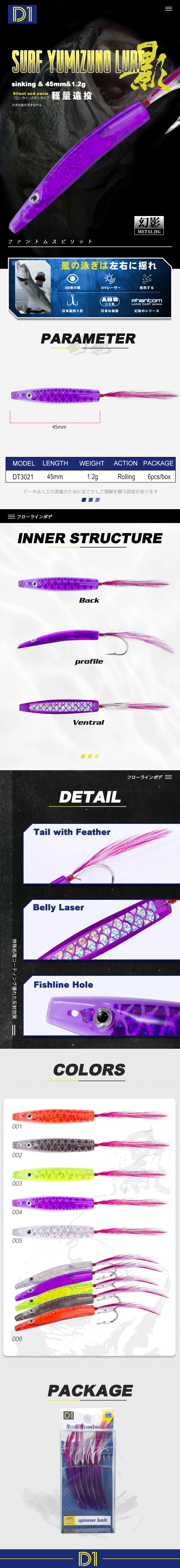 Señuelo de pesca D1 Surf Yumizuno 6 unids/caja cuchara Señuelos de Pesca curricán cebo de plástico duro 45mm/1,2G para aparejos de Lucio Bluefish