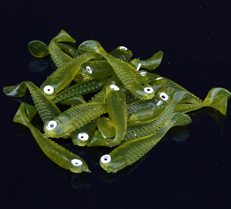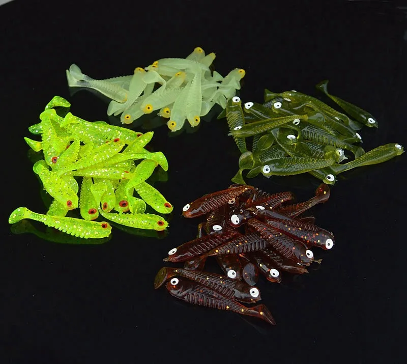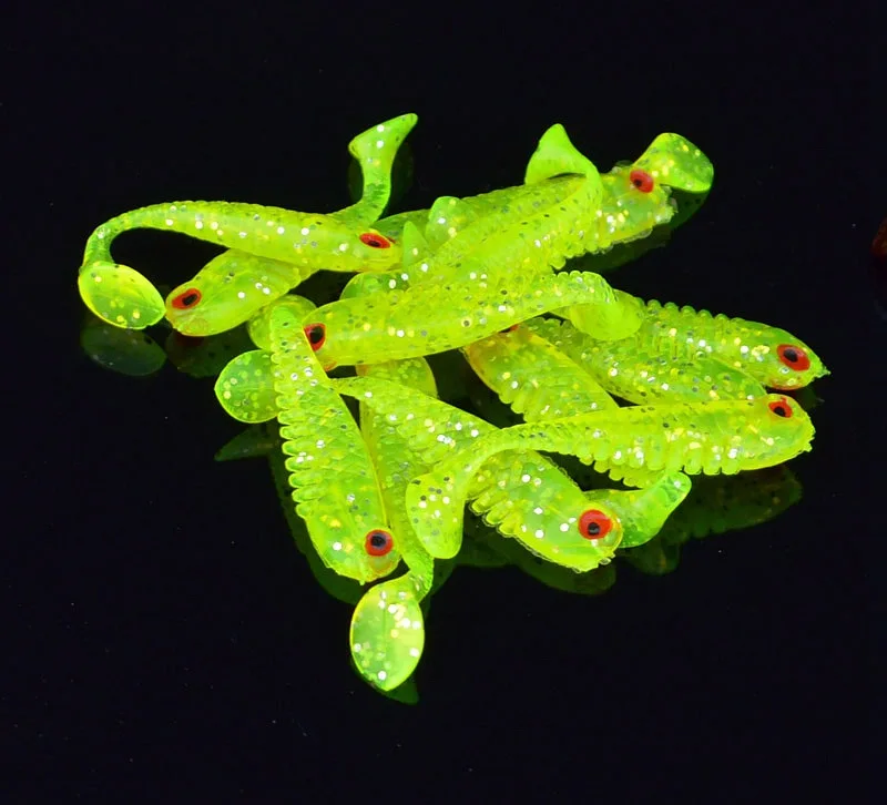 Señuelo de pesca de día y noche, cebo suave con colas 3D, cebos biónicos artificiales, el mejor brillo pequeño, atracción de peces de 5cm