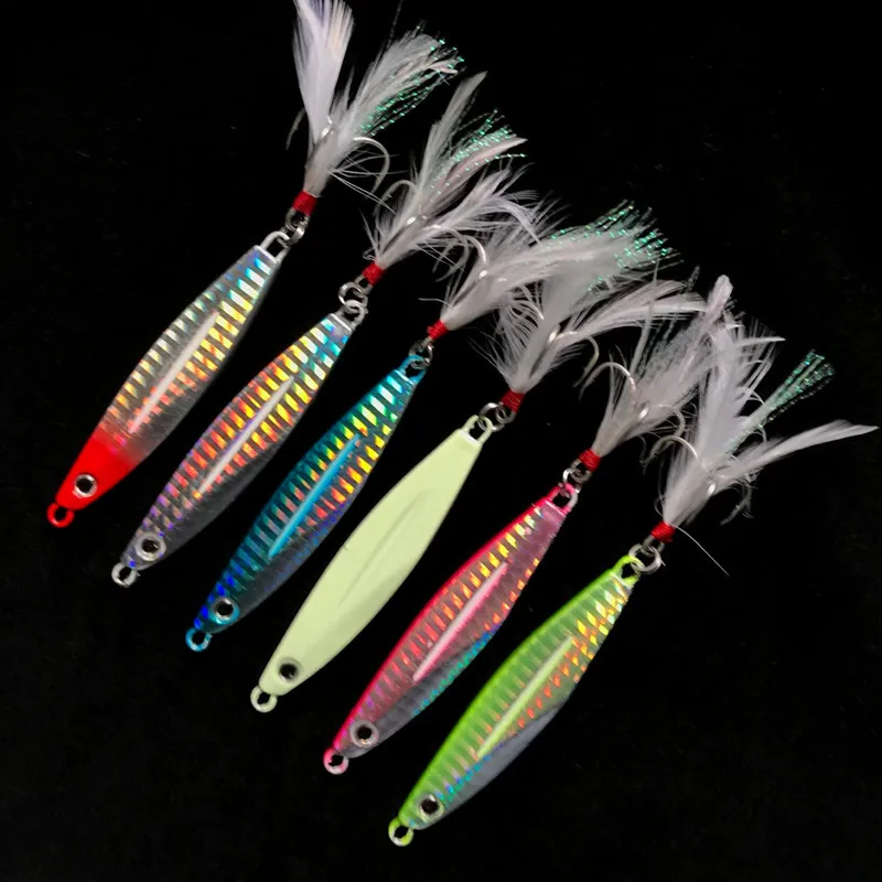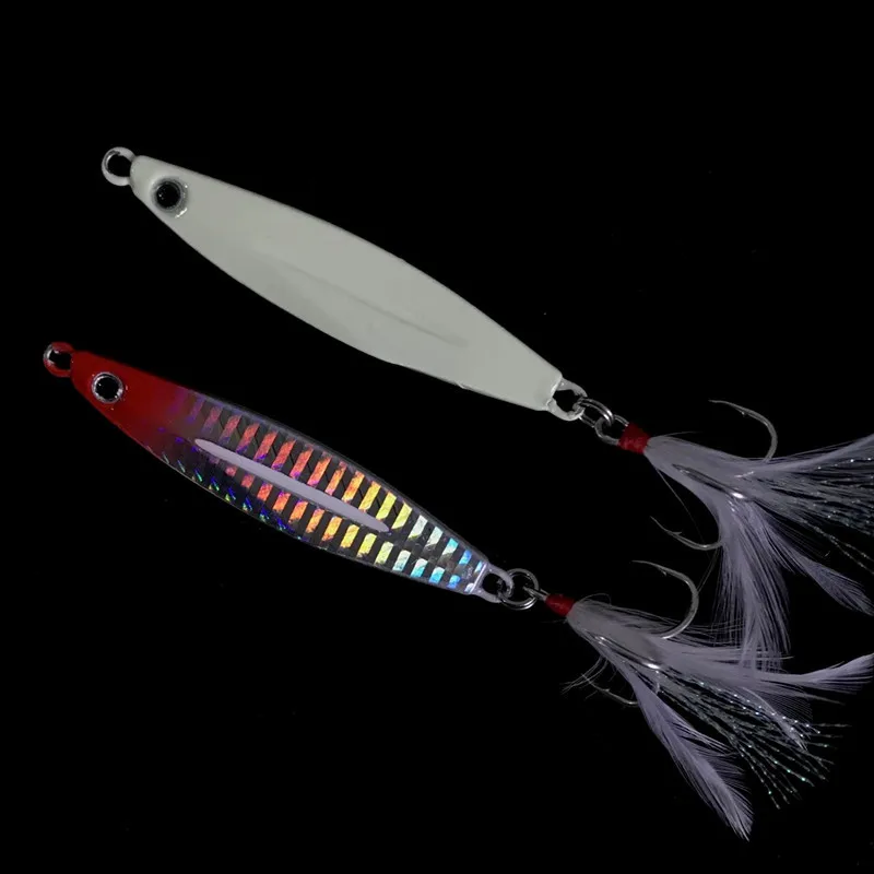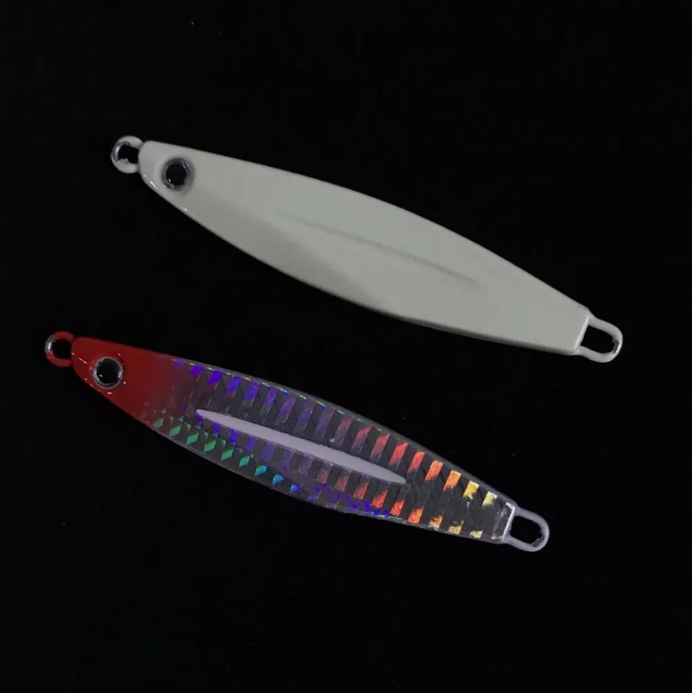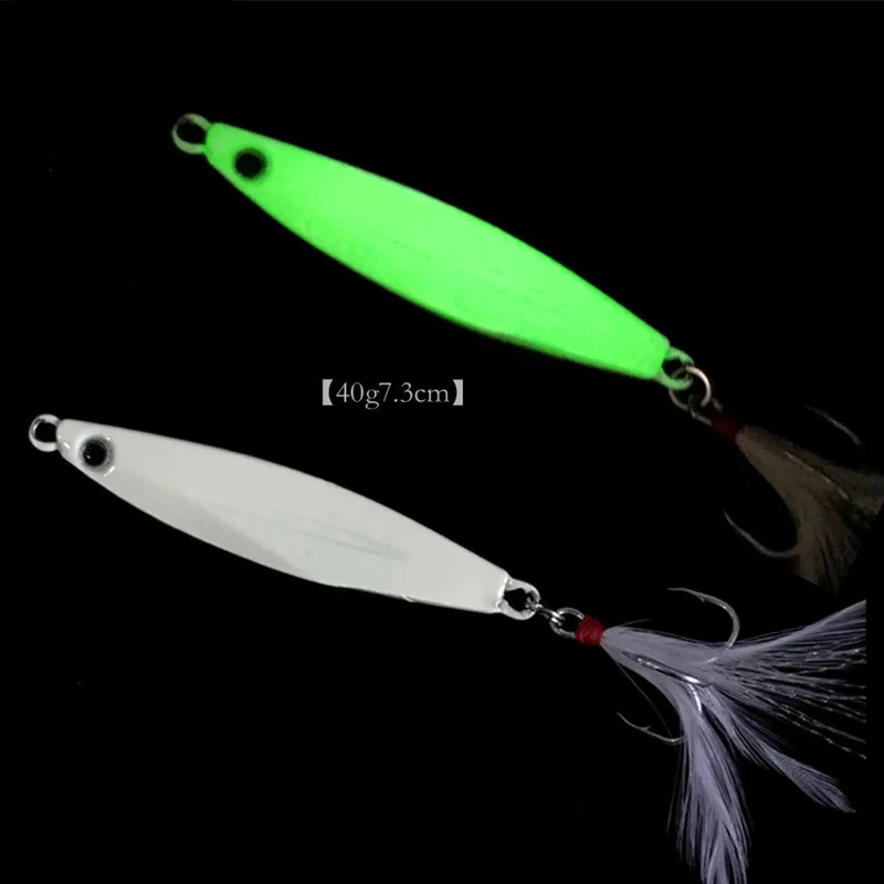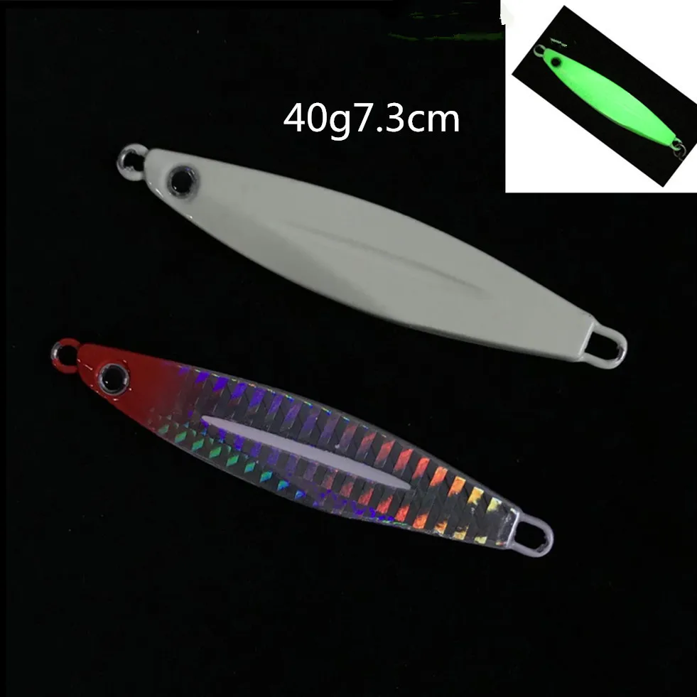 Señuelo de pesca de día y noche, plantillas brillantes con guía de canalón, señuelos artificiales de Jigbait de fundición larga, 7g, 10g, 14g, 21g, 30g, 40g, cebo duro