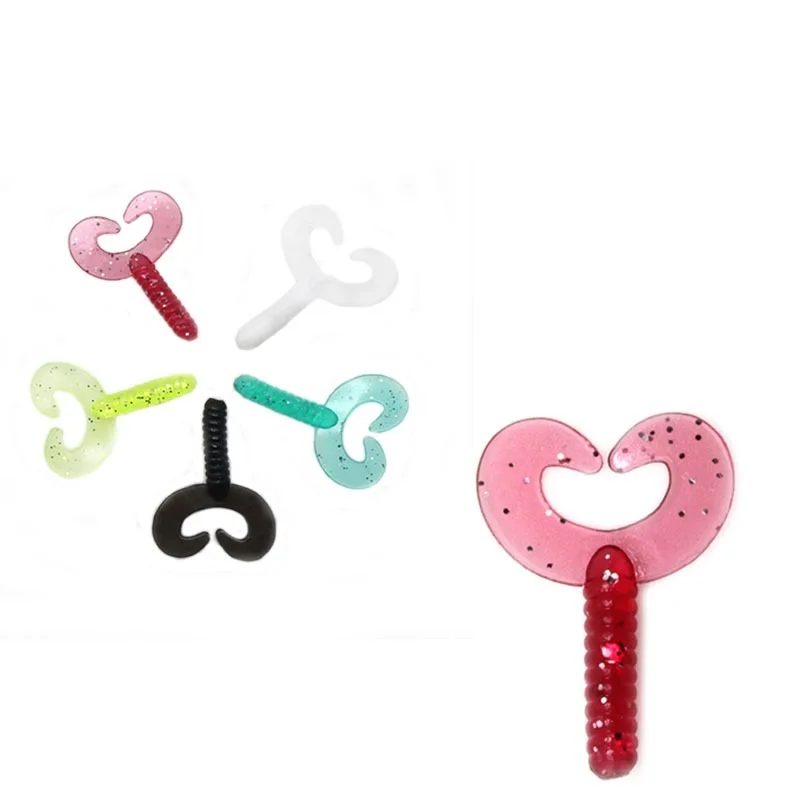 Señuelo de pesca de doble cola de un solo color, suave, 3,5 cm/0,8g, gel de sílice, dos colas, gusanos, Wobblers, Swimbait, cebos de silicona, 50 unidades por lote