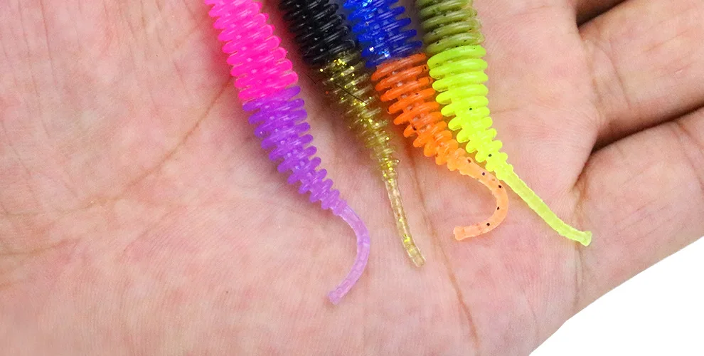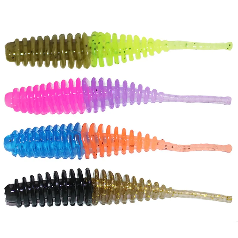 Señuelo de pesca doble Color cebo suave aguja cola larva 5,5 cm/1,2g Topwater tornillo cuerpo gusano lote 6 piezas venta