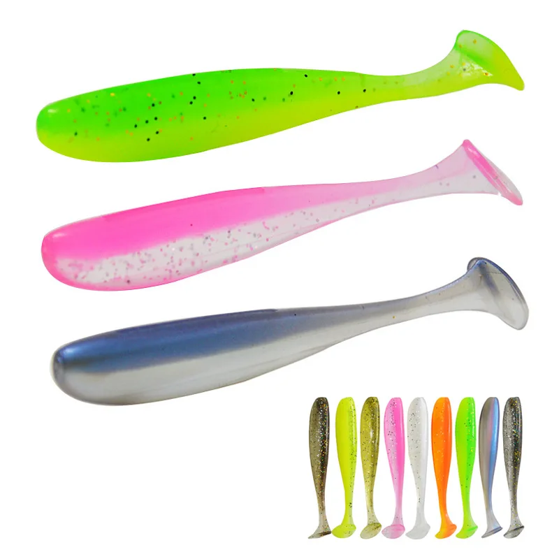 Señuelo de pesca de doble Color, cebo suave de cola en T, 5cm, 7cm, gusano, señuelos artificiales de una sola cola, 10-20 piezas en bolsa