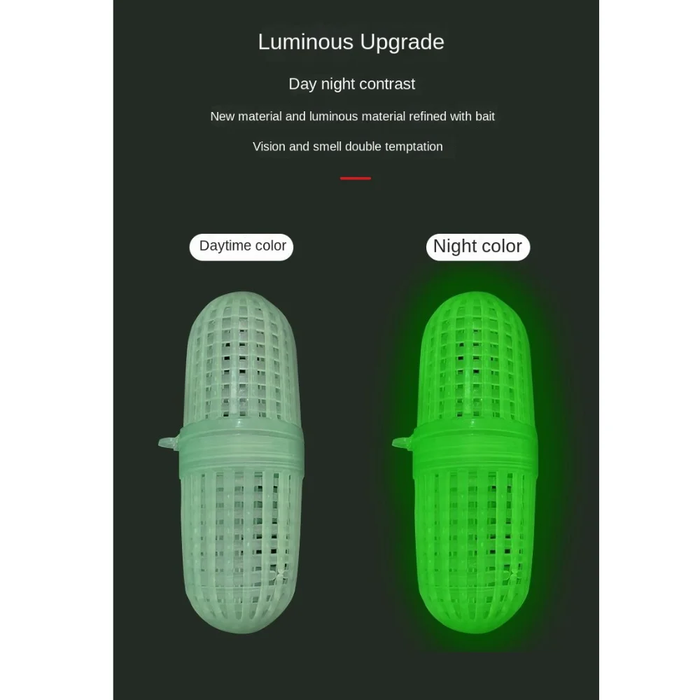 -Alimentador de pesca de carpa, cebo, jaula, señuelo, herramienta de jaula, aparejos de pesca-El cebo de anzuelo se coloca dentro del alimentador, que lo protege eficazmente, el enlace del anzuelo y el cebo libre en el lanzamiento-Estos comederos le permiten regular la cantidad de cebo que usted alimenta, Ahorro de consumo de señuelos-Un diseño de peso hacia adelante le ayuda a tirar más lejos y con mayor precisión, especialmente en condiciones desafiantes-Una buena opción para los entusiastas de la pesca de carpa, amantes de la pesca en embalses. -Material: PE -Color: Blanco/Negro/Luminoso-Tamaño: 8,1*2,8 cm (3,19*1.10in) El paquete incluye: 10 x