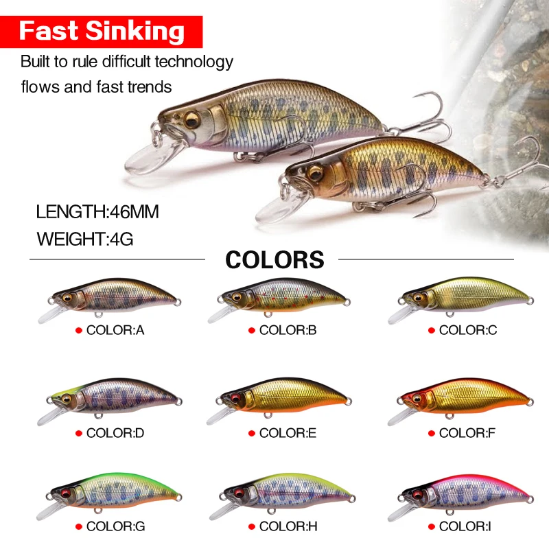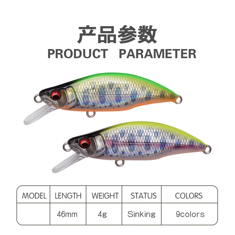 Señuelo de pesca duro de alta calidad, diseño japonés, 46mm, 4g, que se hunde piscardo, Señuelos de Pesca para perca, Lucio, trucha, lubina