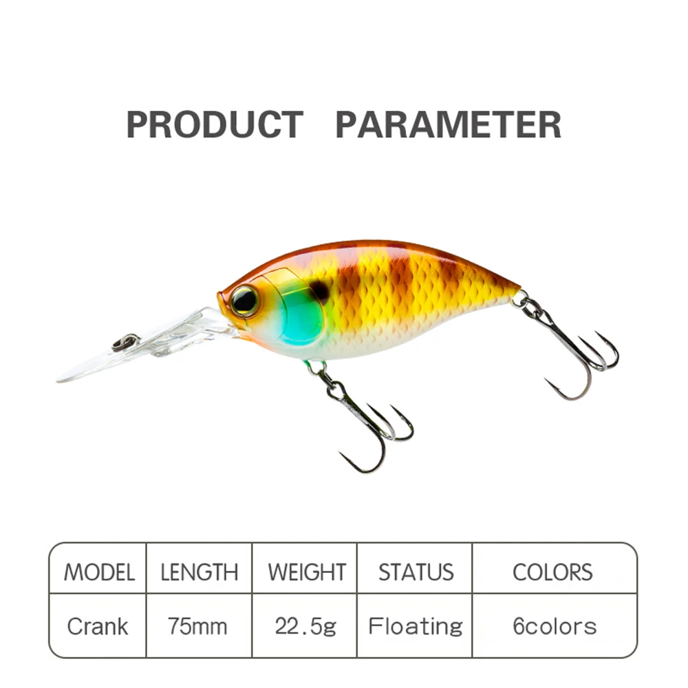 7,5 cm 22,5G señuelo de pesca Crankbait Wobbler señuelo largo fundido buceo profundo flotante labio largo ruido océano pesca cebo duro Artificial