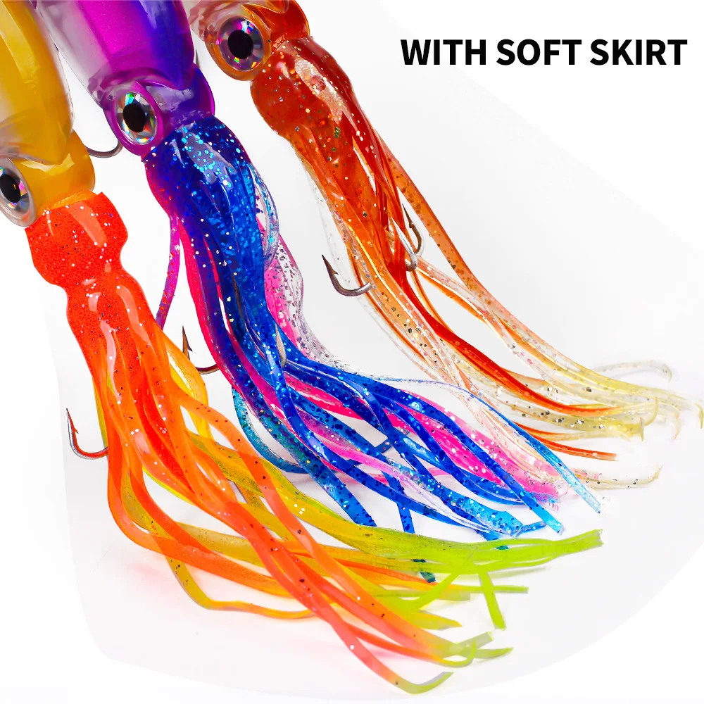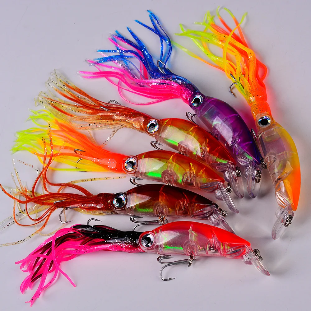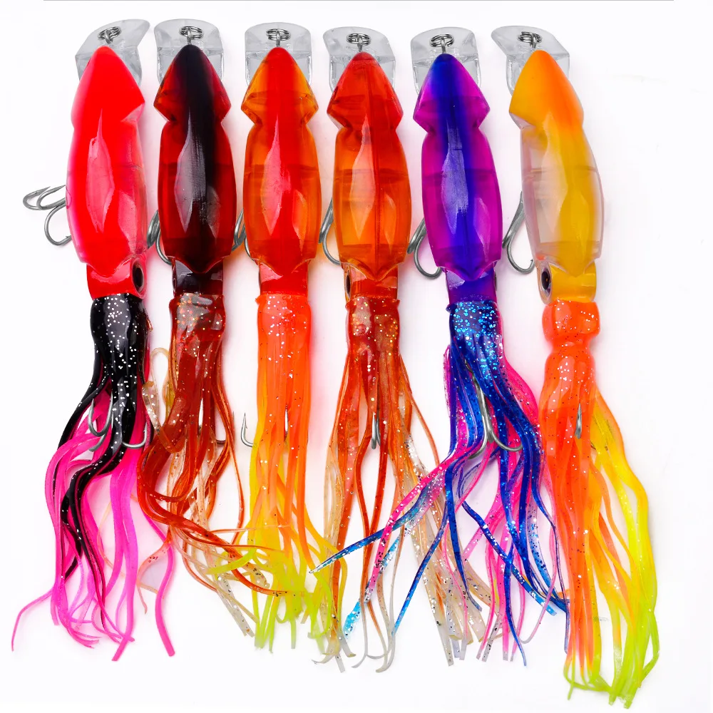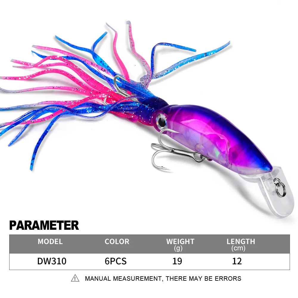 Señuelo de pesca duro de calamar, 1 unidad, 12cm, 19g, ojos 3D, cebo de pulpo Artificial, Swimbait, Manivela para pesca en el mar, aparejos Wobbler de tiro largo