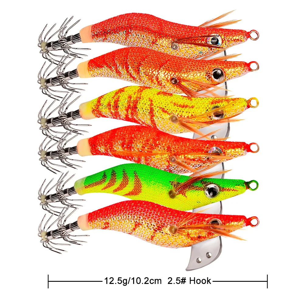 Señuelo de pesca duro, cebo de calamar, 7,5g, 12,5g, 15g, anzuelo de pulpo, anzuelo de calamar, señuelos de camarones de madera, simulación de señuelo de pesca de mar, aparejos de plantillas