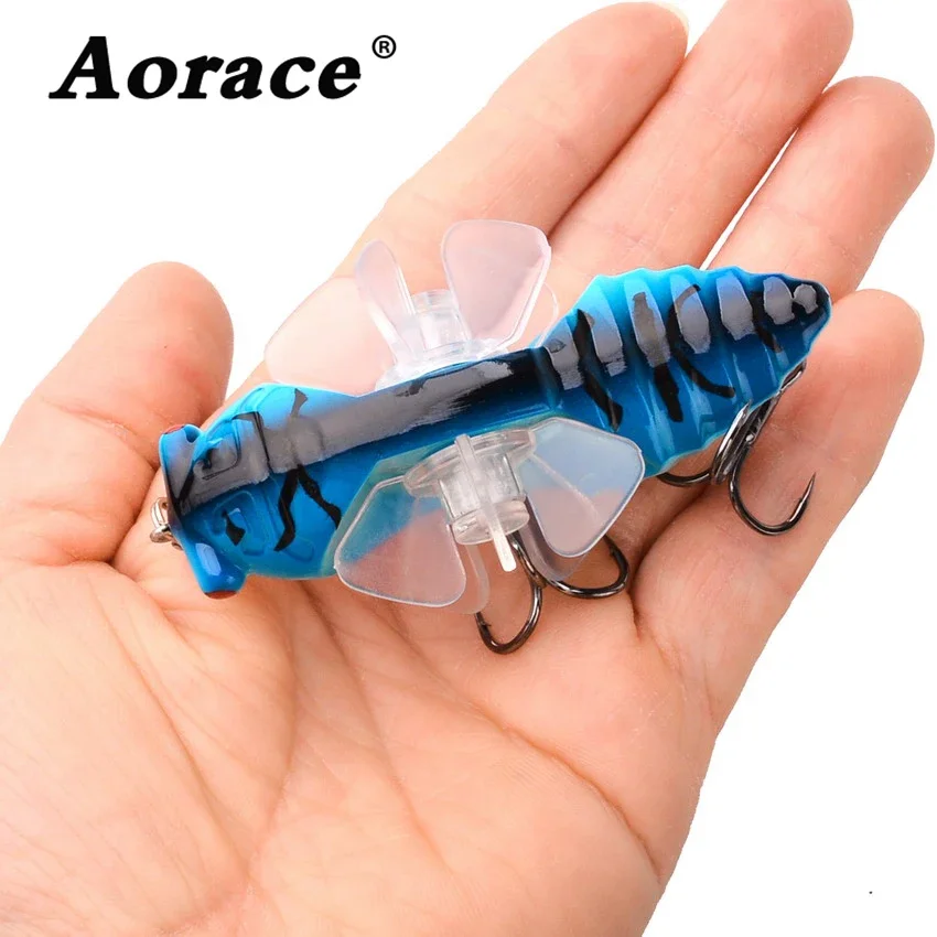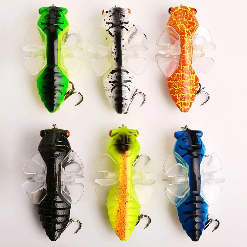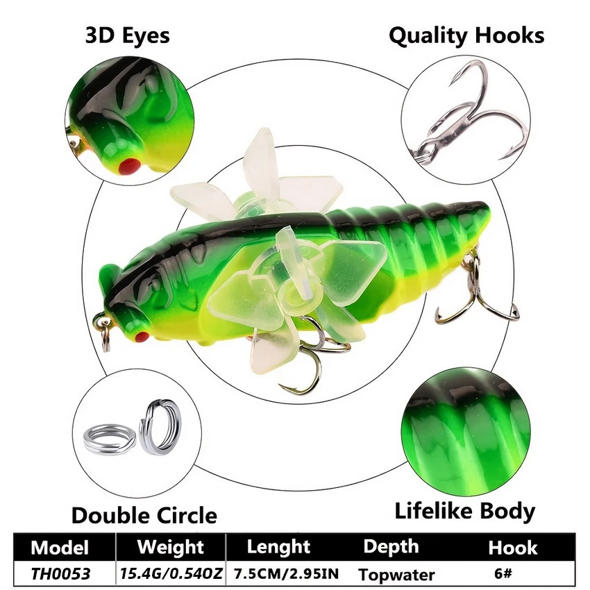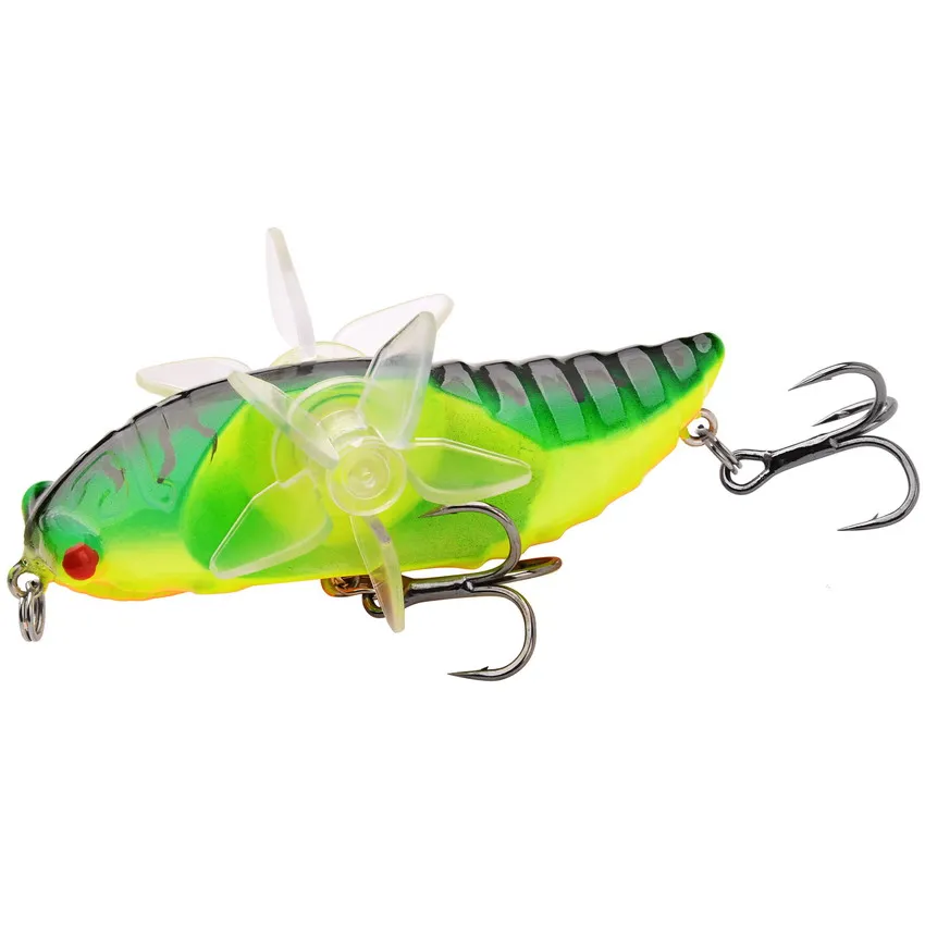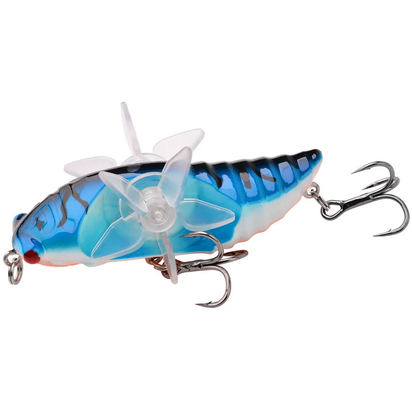 Señuelo de pesca duro de cigarra biónica, cebo de pesca giratorio con hélice, anzuelo triple, diseño realista para mayor tasa de captura, 1 ud.