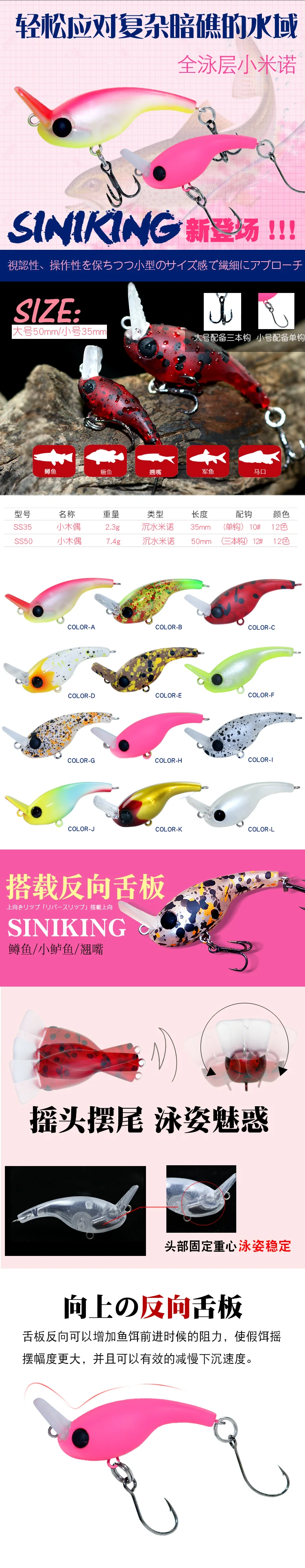 Señuelo de Pesca duro de diseño japonés, 2,3g, 7,4g, Minnow, Wobblers, Crankbait