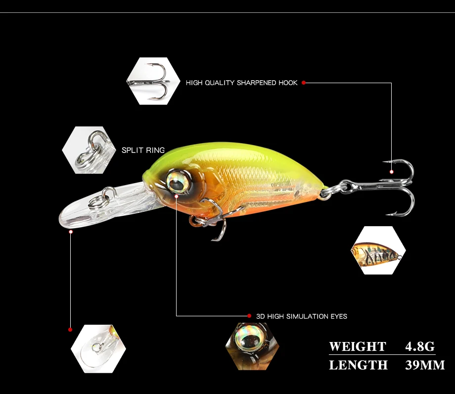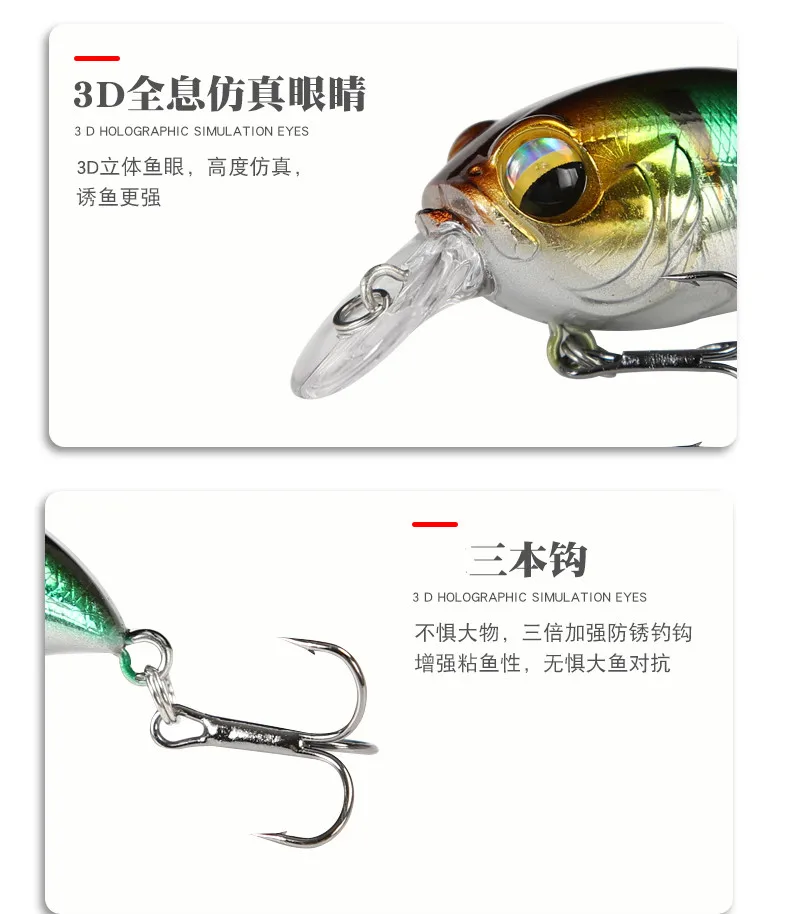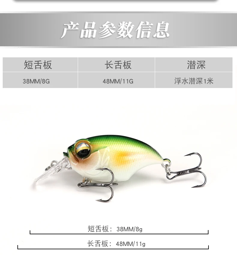 Señuelo de Pesca duro de diseño japonés, 38mm, 8g, 39mm, 4,8g, Mini cebo de manivela para lucio, perca, lubina flotante, Crankbait, 2021