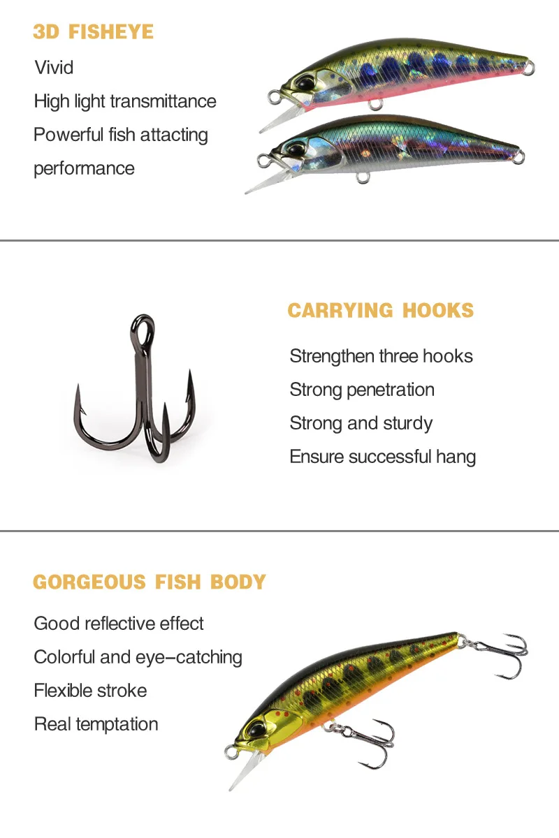 3. Los cebos tienen pintura realista y ojos 3D vívidos, hacen que el cebo parezca un pez real nadando en el agua durante la pesca.