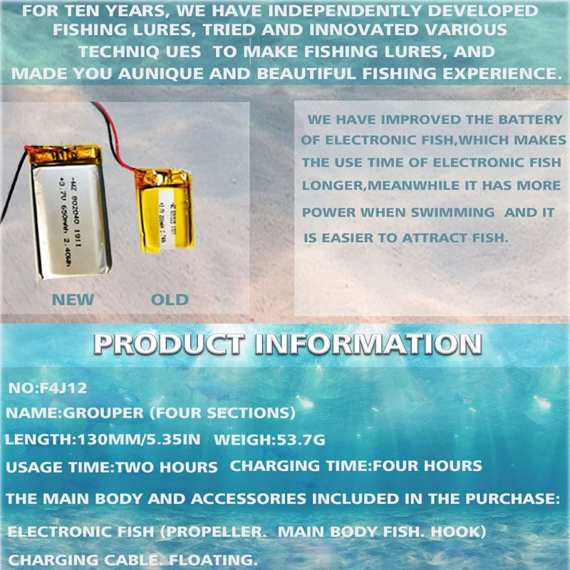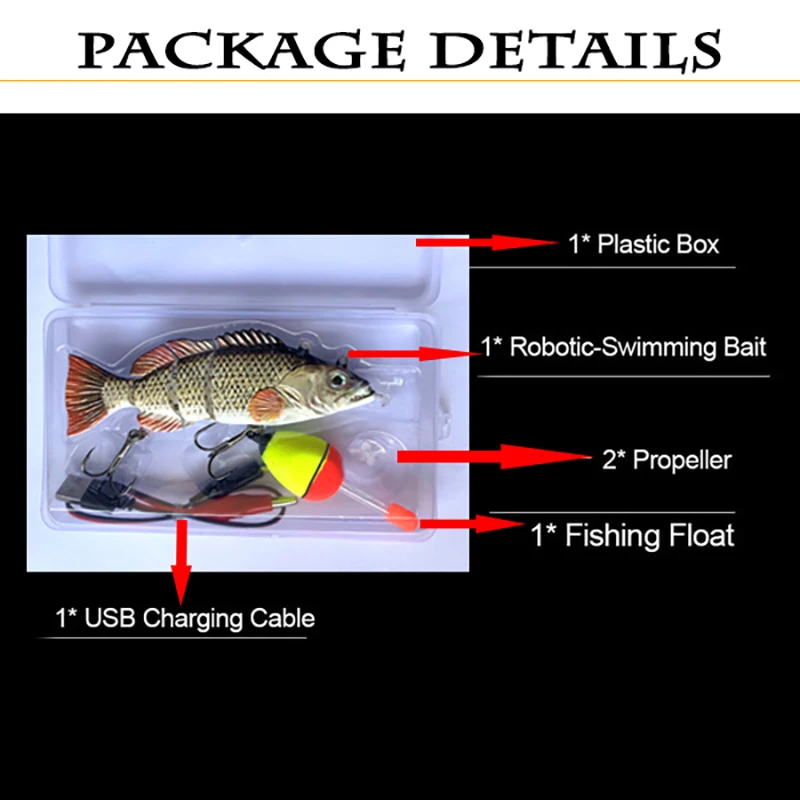 ¿Quieres probar un nuevo cebo artificial? ¡Este es un gran ayudante de pesca!El Paquete de Swimbait eléctrico incluye:1x Swimbait
