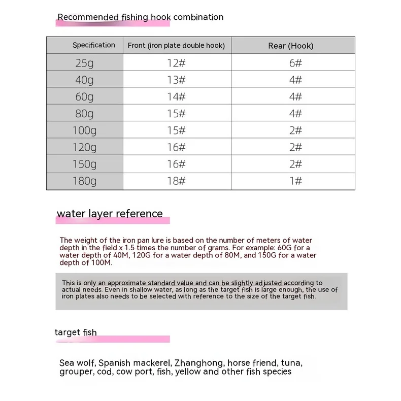(3) Los jigs son ampliamente utilizados para peces variados, como atún, Rey, pargo, diente de perro, mero, salmón bajo.