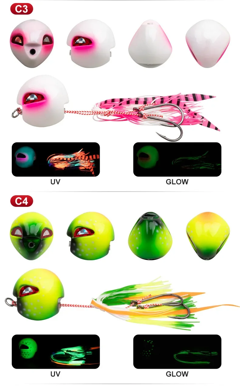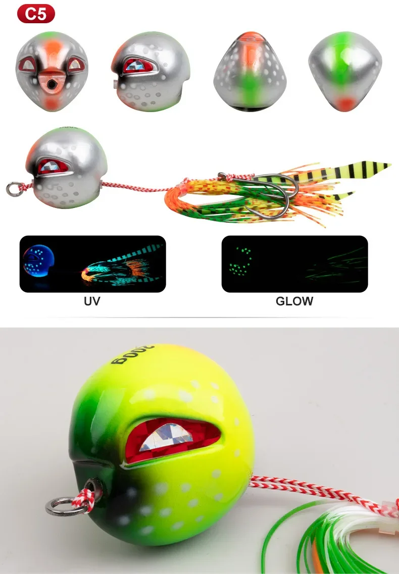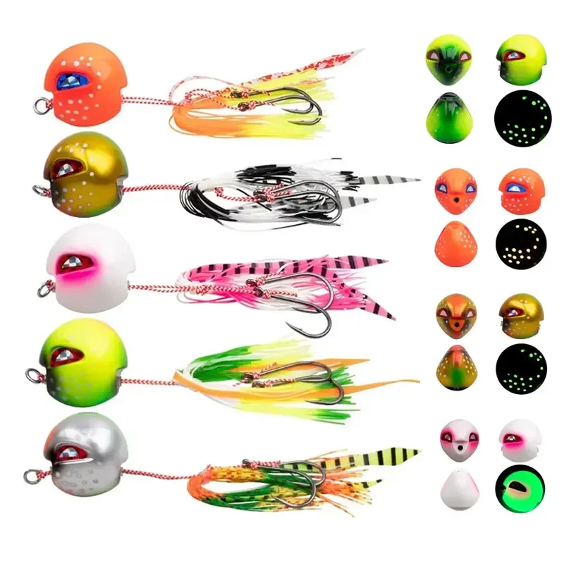 Señuelo de pesca en el mar, plantilla para cabeza, anzuelo con cabeza de plomo, cebo de plomo que brilla en la oscuridad, cebos de placa, pesca en barco en el océano de aguas profundas
