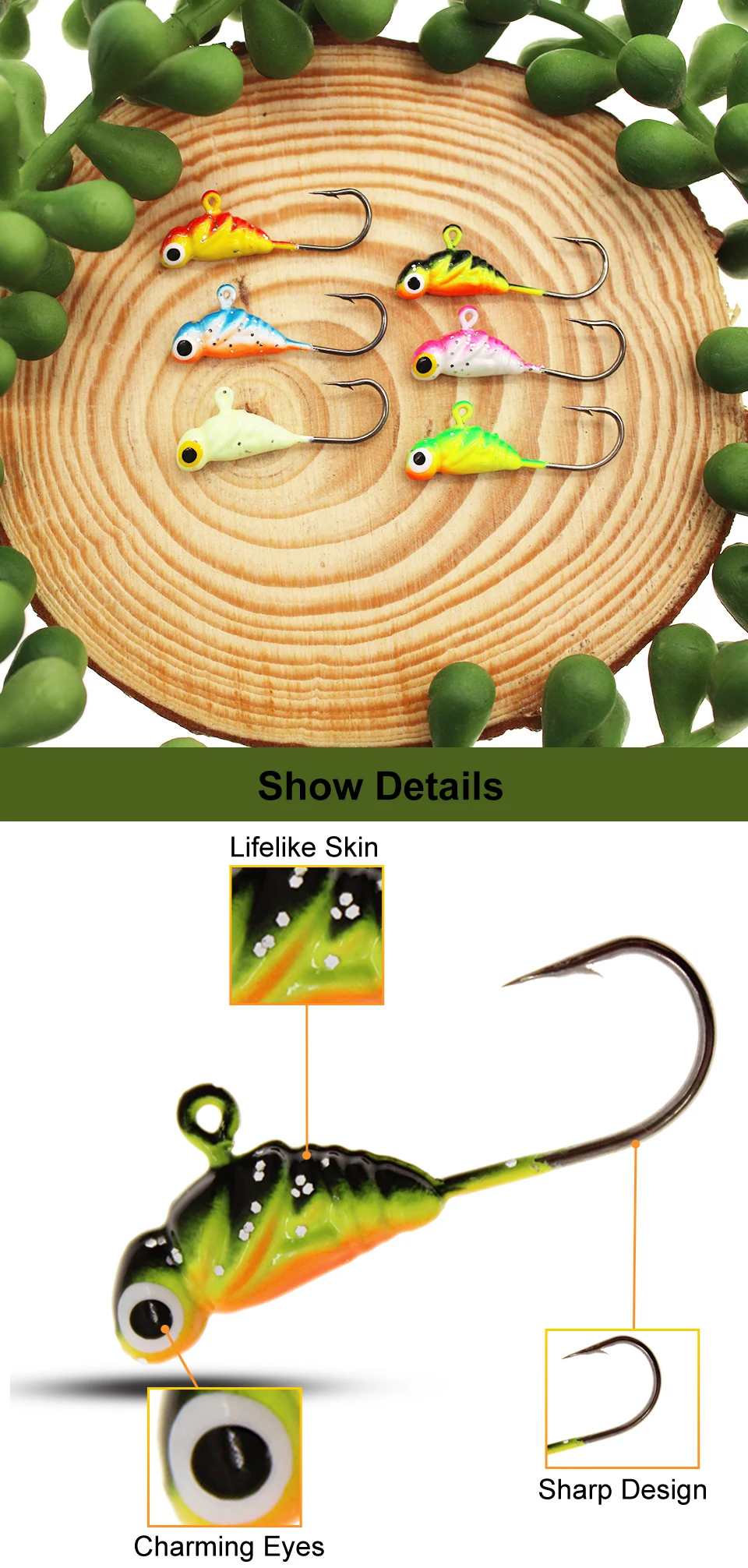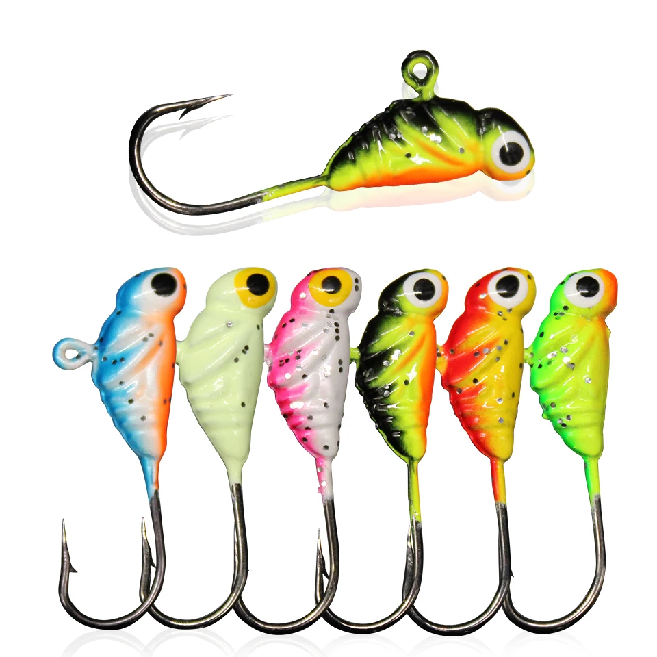 Señuelo de pesca en hielo, anzuelo de Metal duro, cabeza de plomo, hundimiento, Mini señuelo de pesca en hielo, aparejos de pesca Jigging, 6 piezas, 27MM/2G