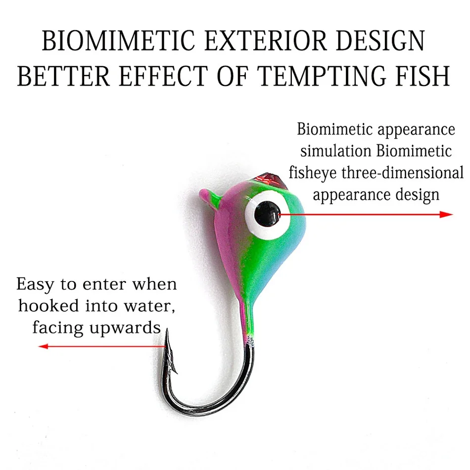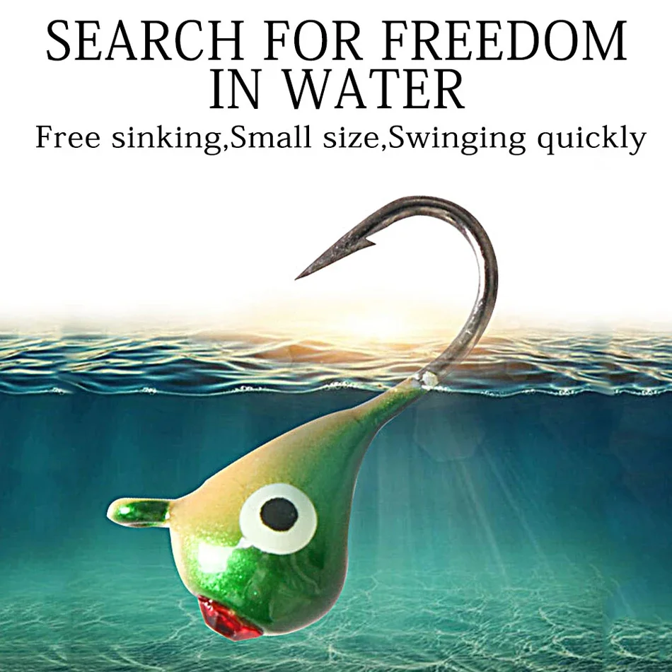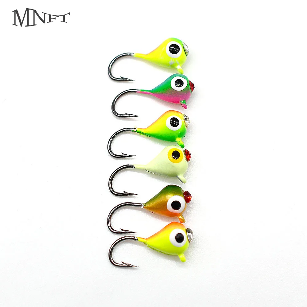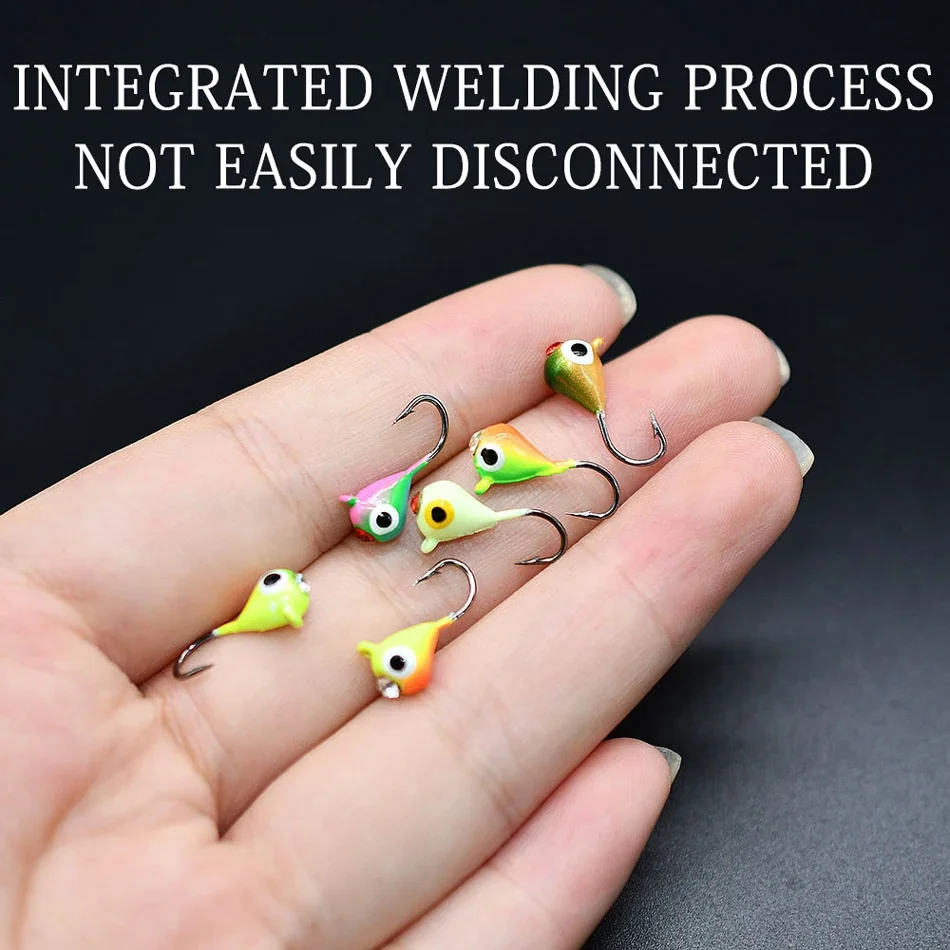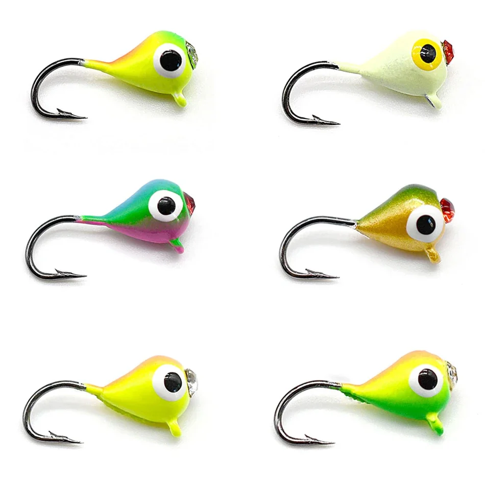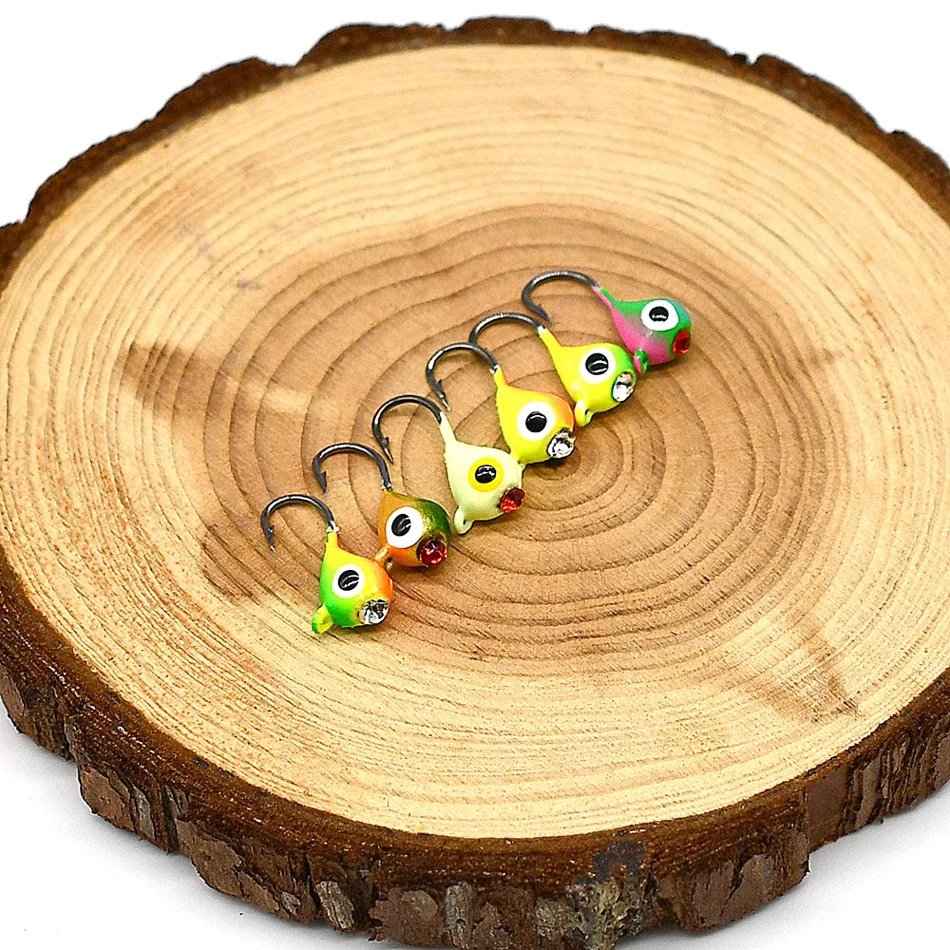Señuelo de pesca en hielo, cebo Artificial, cabeza de plantilla, pequeño gancho de pesca en hielo, gusano, 6 piezas, 15mm/1,1g