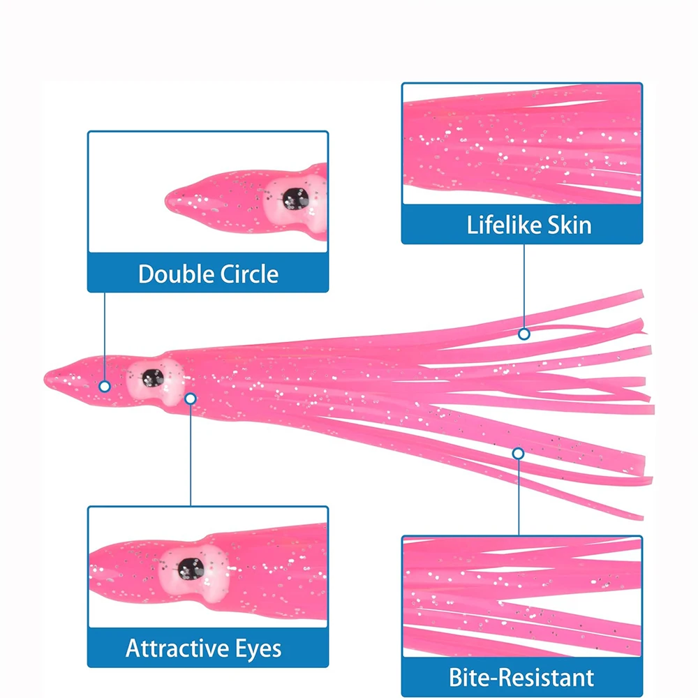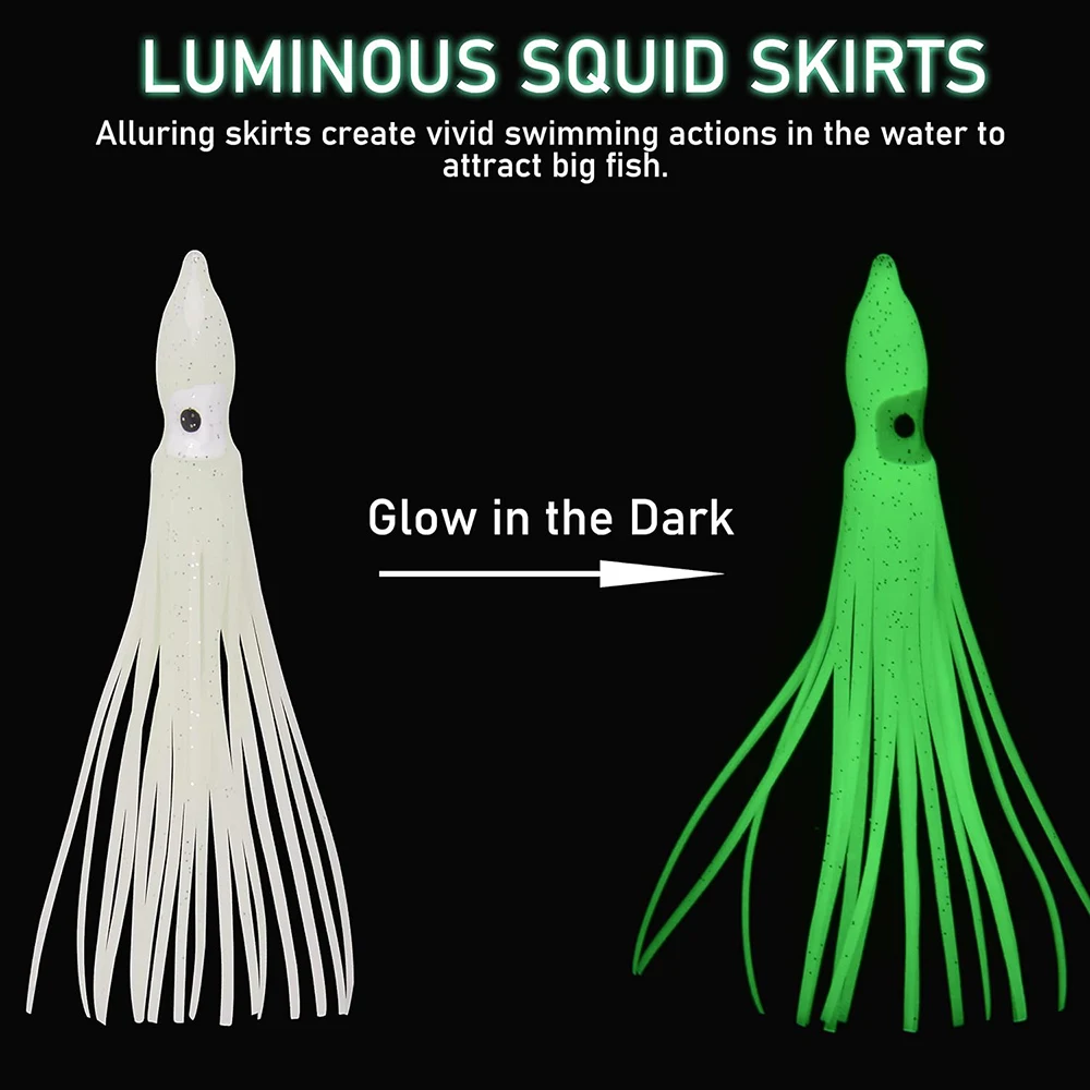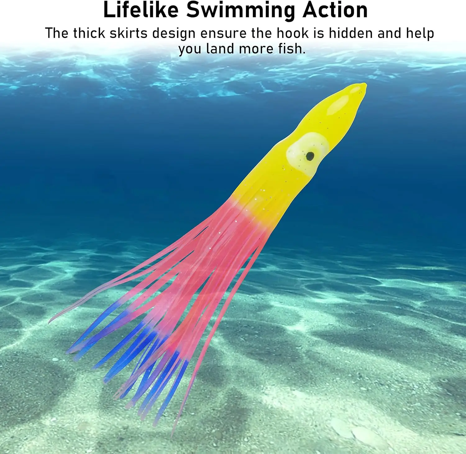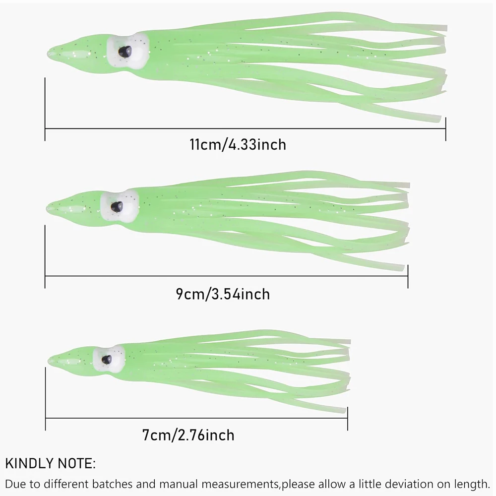 Señuelo de pesca de faldas de calamar de pulpo 20 piezas, 11cm, señuelo suave de curricán luminoso de mar, cebo Artificial de pulpo brillante para pesca en agua salada