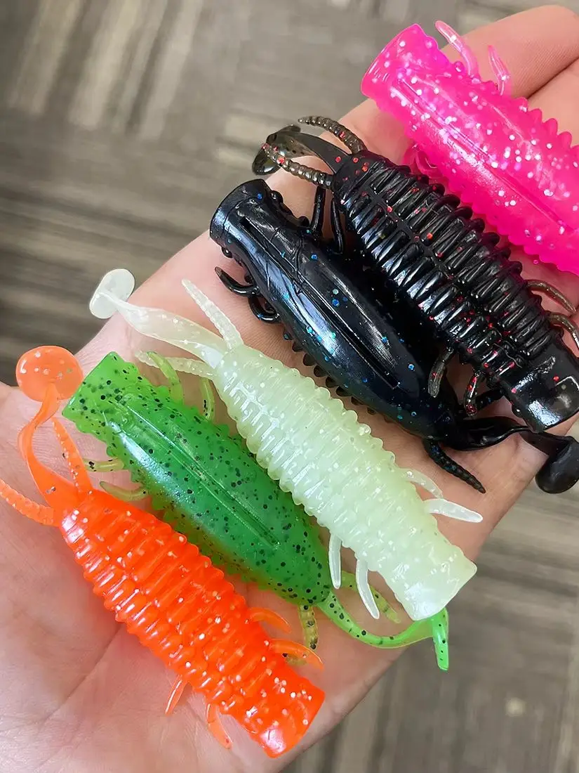 Señuelo de pesca FishTrip, cebo de plástico suave, 5 uds., señuelo Popper Topwater, 8cm, Swimbaits, libélula, larva, trucha de agua dulce, panfish