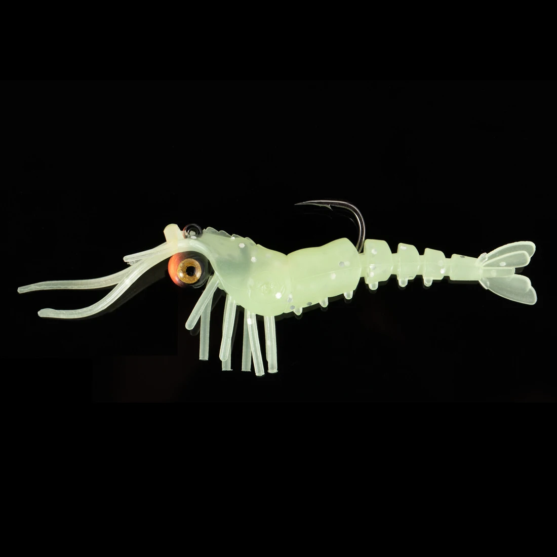 Una tasa de caída constante, una acción de natación realista y patas de vibración hacia abajo hacen que los señuelos de camarón sean fácilmente capaces de superar la pesca real.