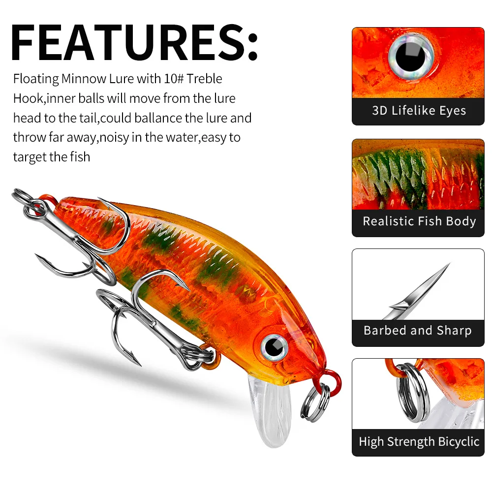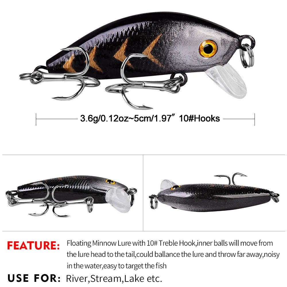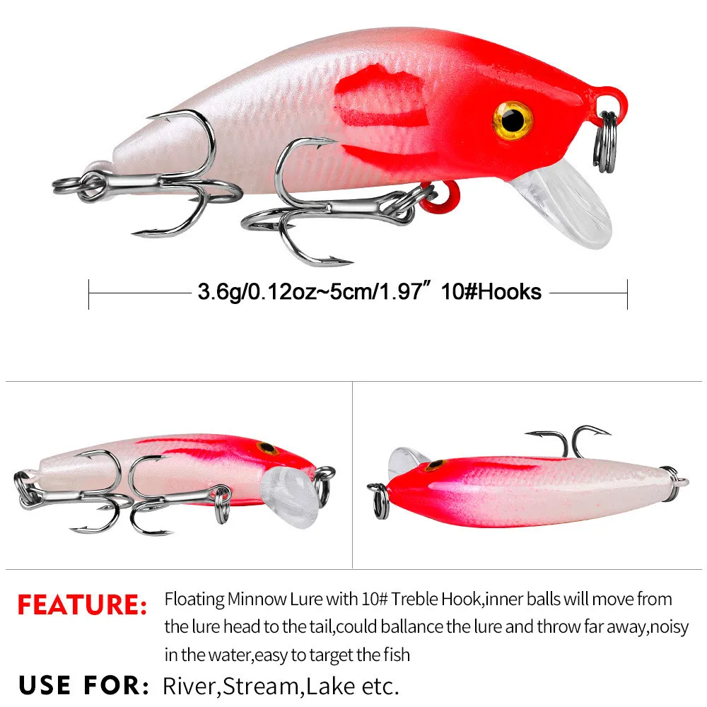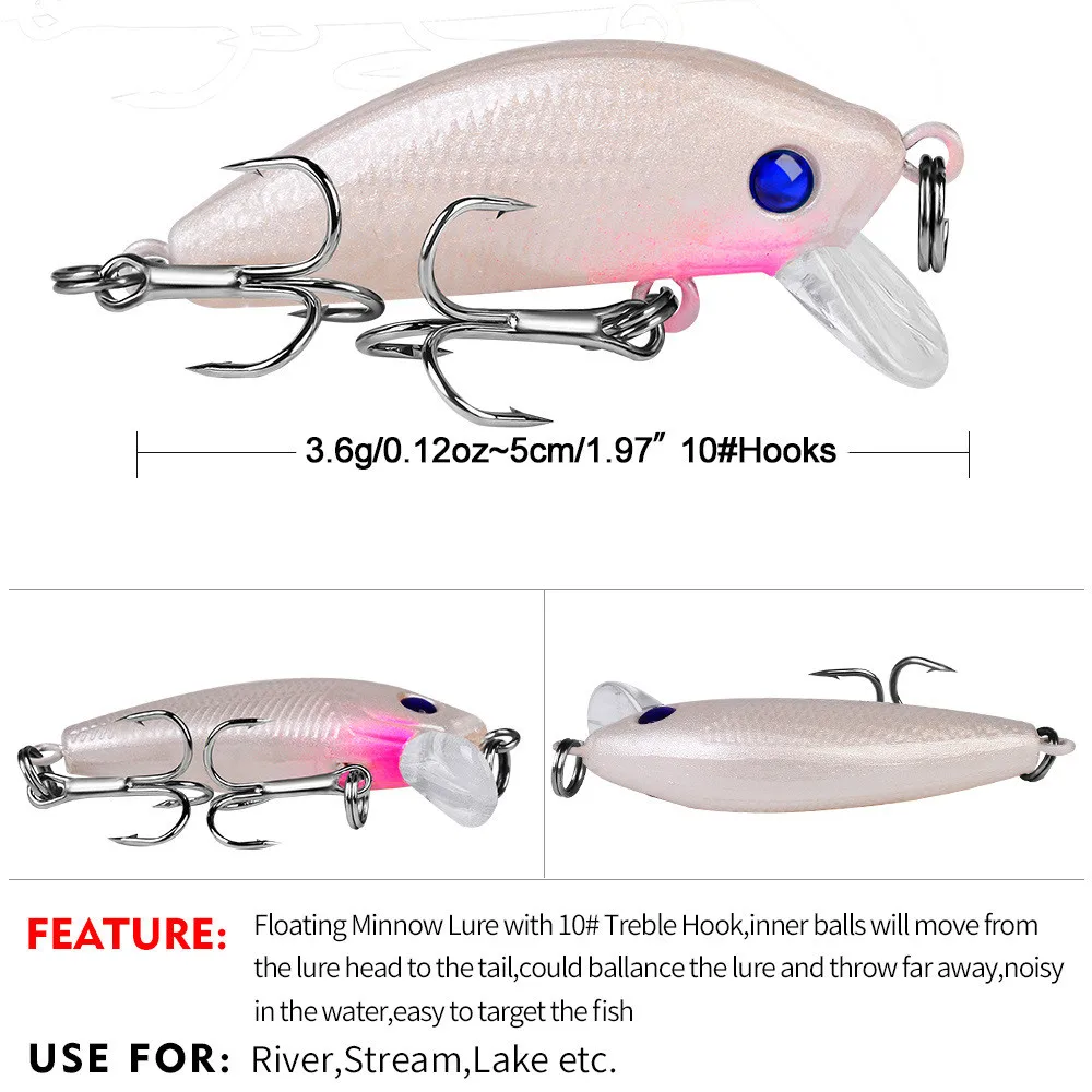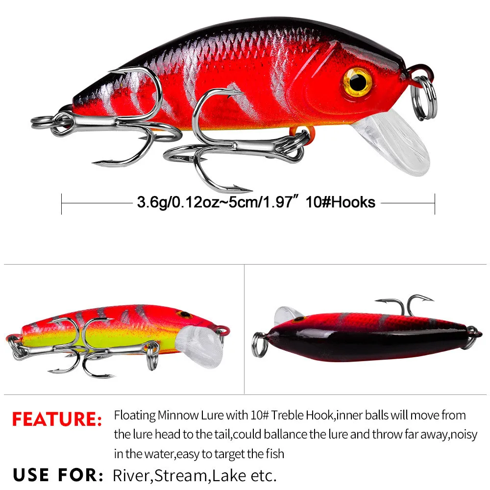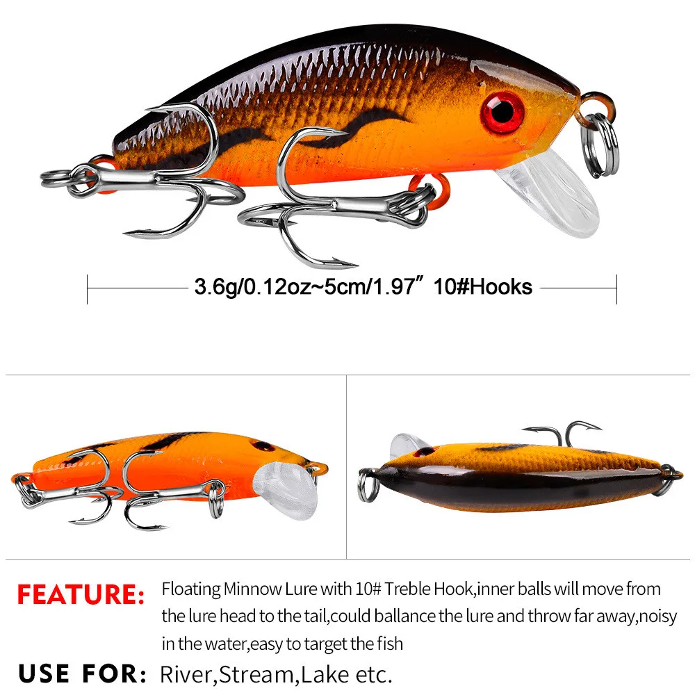 Señuelo de Pesca flotante de 5cm y 3,6g, cebo duro Artificial de calidad Minnow, Crankbait para carpa, aparejos de Pesca, 1 unidad