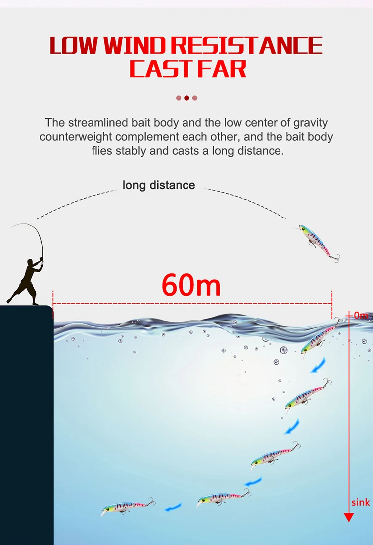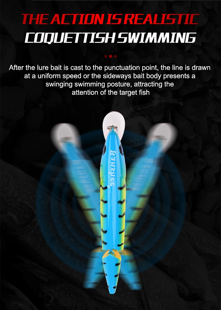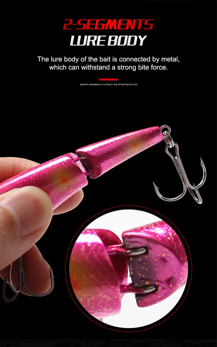 El diseño de dos secciones y Múltiples articulaciones de este señuelo permite una acción de natación más realista en el agua, tentando las picaduras de las especies de peces objetivo.