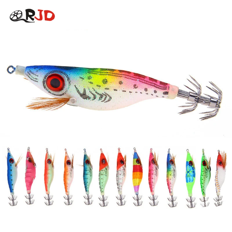 Señuelo de pesca flotante, cebo de camarones de madera Artificial, anzuelo de calamar, sepia, pulpo