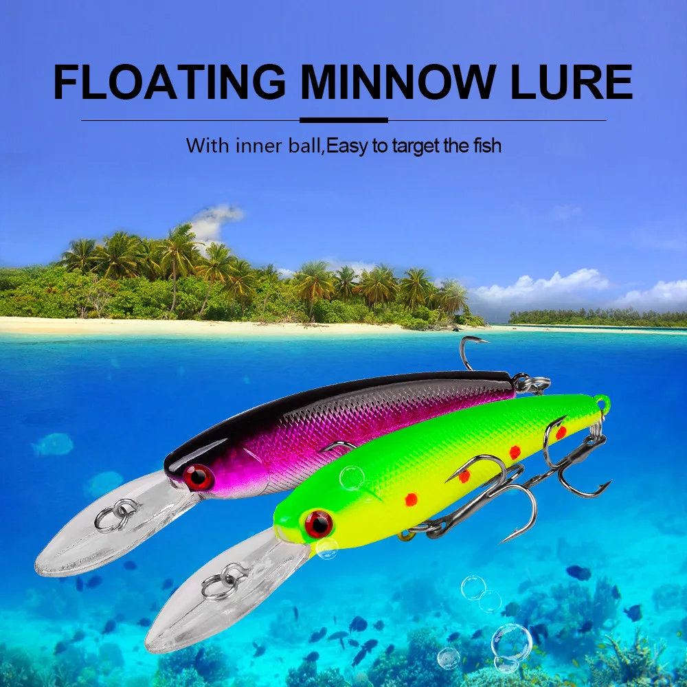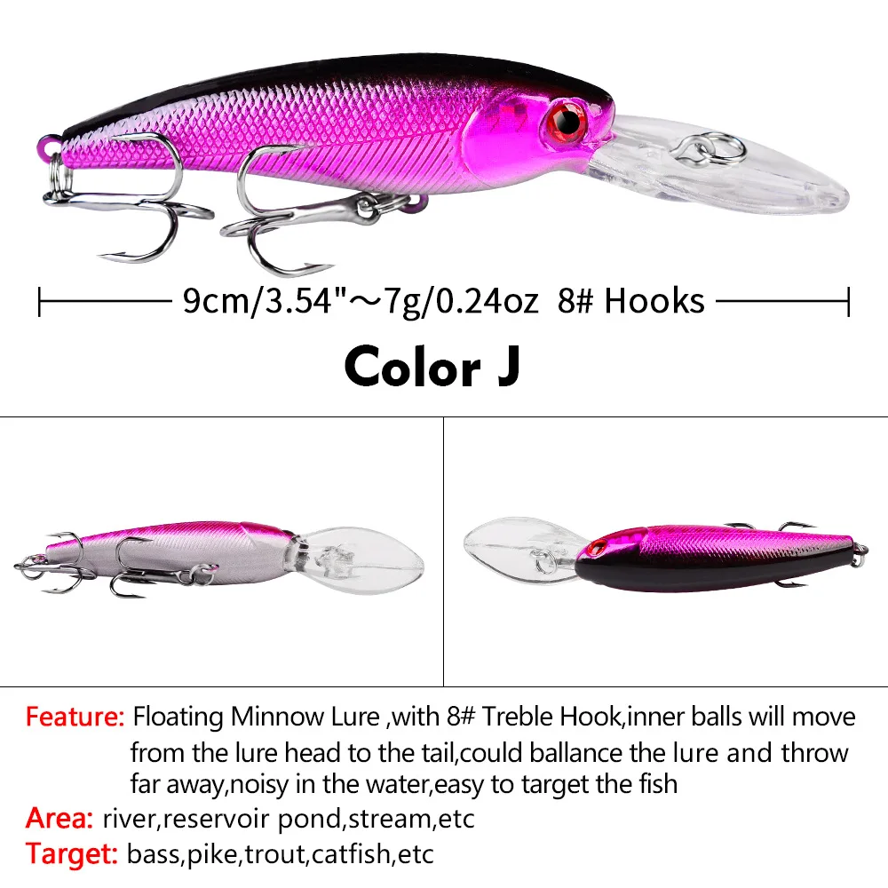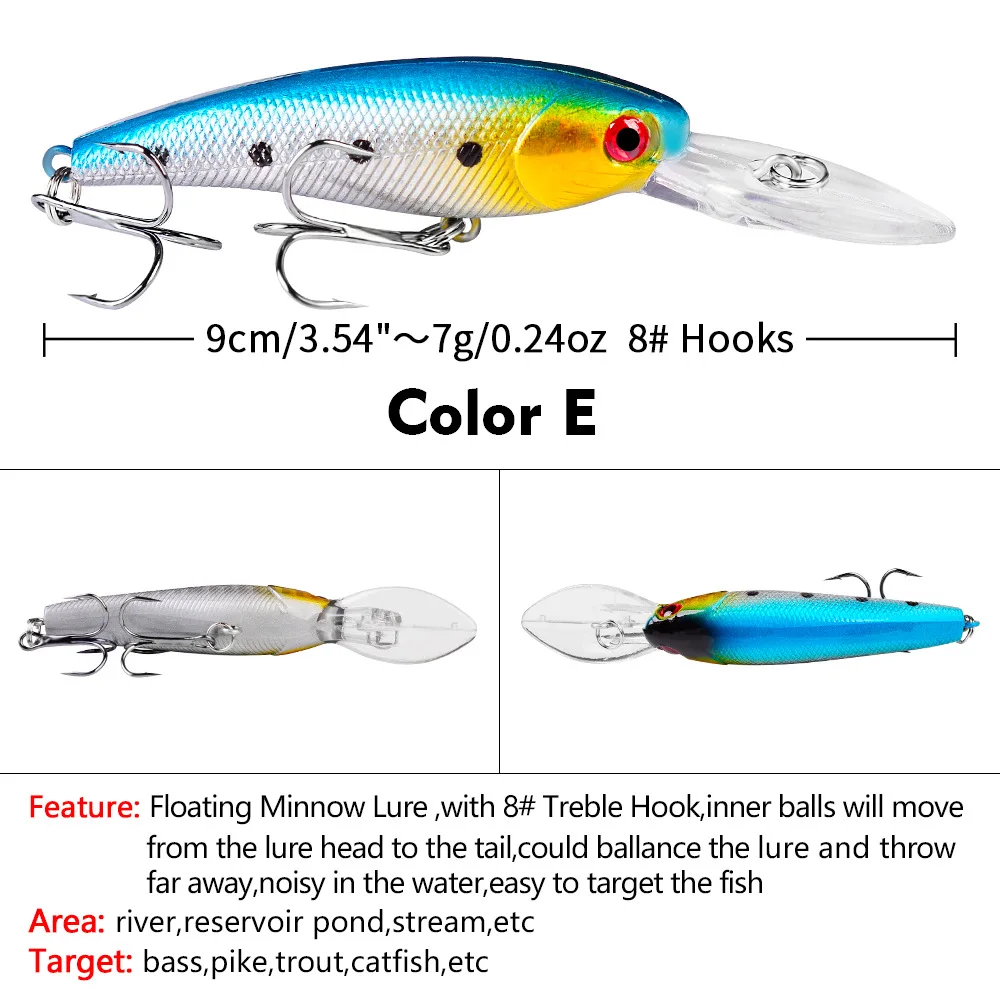 Señuelo de pesca flotante, cebo duro de plástico Artificial para lubina, trucha, aparejos de pesca, 90mm, 7,28g, ojos 3D, Crankbait, wobbler