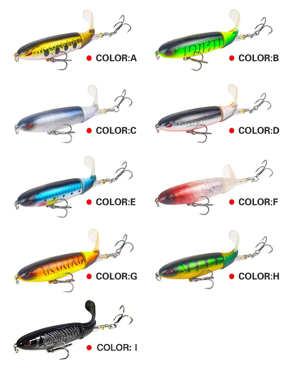 Whopper Plopper Señuelos de Pesca 9cm 13g Topwater lápiz cebo wobbler Isca artificial suave cola giratoria aparejos de pesca