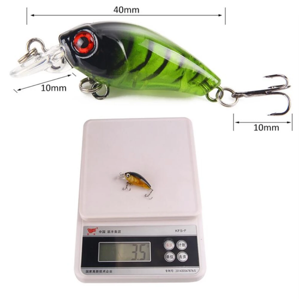 Señuelo de pesca flotante Crankbait, Wobblers, 4,5 cm, 3,5g, cebo duro de plástico Artificial, ojos 3D, aparejos de pesca de Lucio, 9 unidades por lote