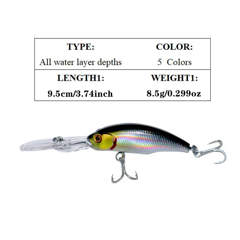 Señuelo de pesca flotante de lengua larga, 1 Uds., 9,5 cm, 8,5g, Crankbait, cebo duro Artificial, Wobblers para lubina, carpa, Lucio, aparejos de calidad
