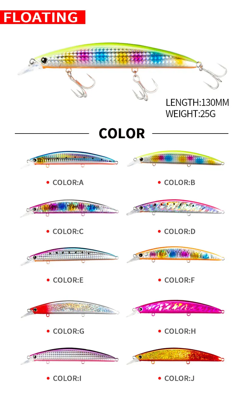 Señuelo de pesca flotante Minnow 130mm 25g Señuelos de pesca de calidad profesional cebo duro calidad Wobblers Mnnow cebo Artificial