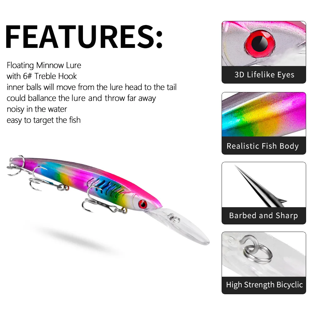 Señuelo de Pesca flotante Minnow, 15,2 cm, 12g, cebo duro Artificial, Wobblers de curricán para Lucio, Crankbait, Pesca, carpa, aparejos de Peche