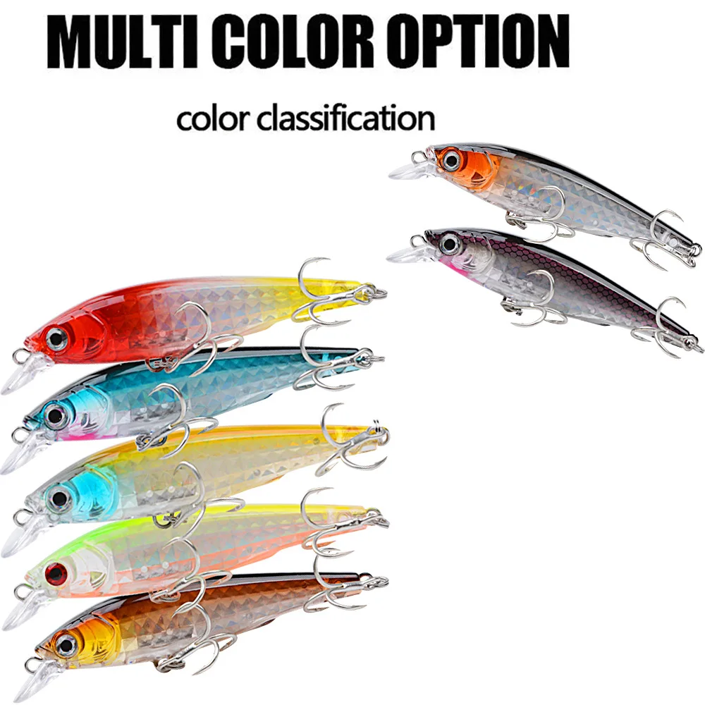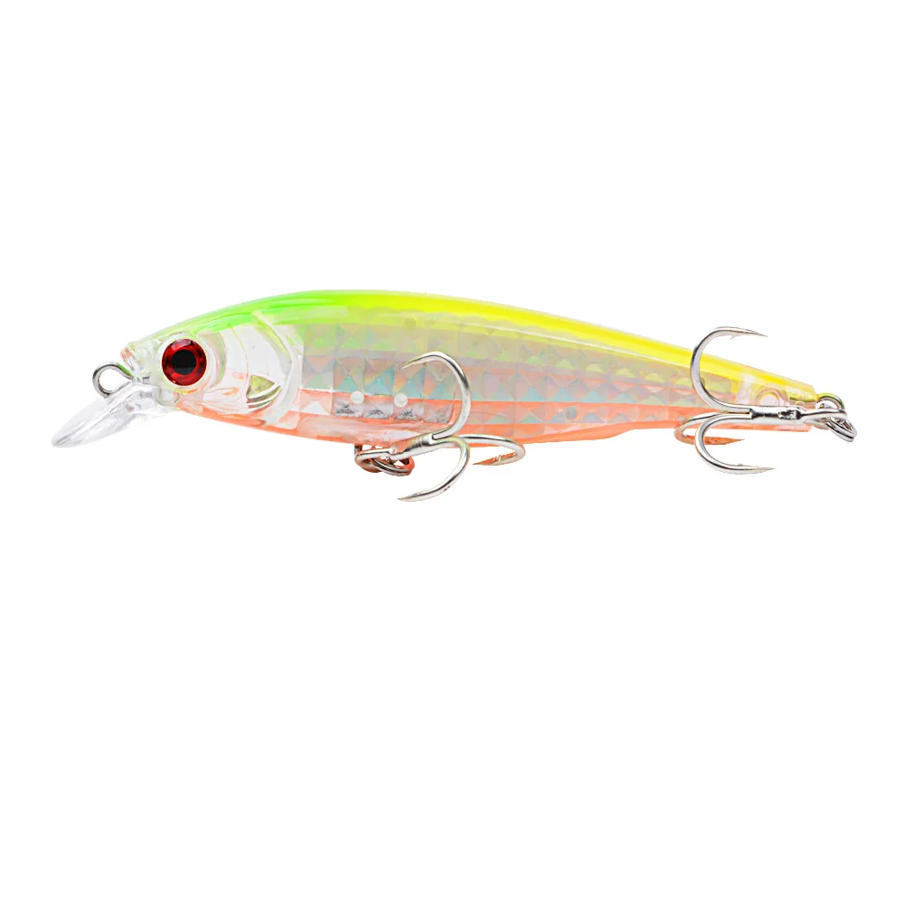 Parámetros del producto: Longitud: 9 cm Peso: 9,5 g Profundidad de natación: Levitación Material: plástico ABS de papel láser incorporado Ganchos: 6# gancho ojos: ojos 3D Pintura: pintar pintura de pegamento duro PS (Embalaje: bolsa OPP)
