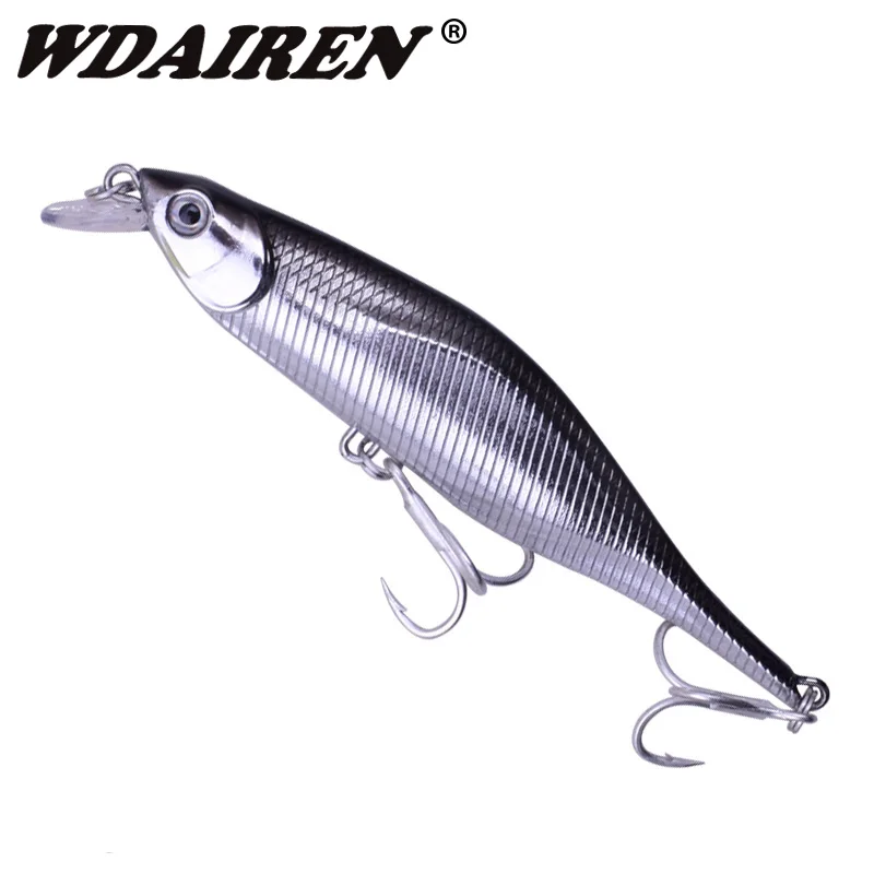 Especificaciones:Marca: WDAIRENTipo de señuelo: señuelo de pesca de pececillo que se hundePeso del señuelo: 11g/0.388ozLongitud del señuelo: 110mm/4.33inGanchos: 6 #Ojos: ojos de pez 3DAnillos: Anillos planosColores: 5 colores diferentesLista de embalaje1 * señuelo de pesca/caja
