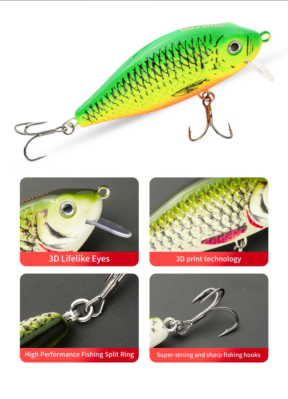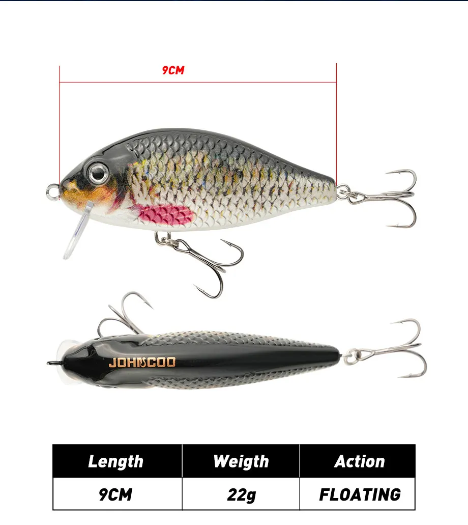 Señuelo de pesca flotante Minnow Crankbait Wobblers, cebos artificiales, señuelos de pesca para Lucio y lubina, alta calidad