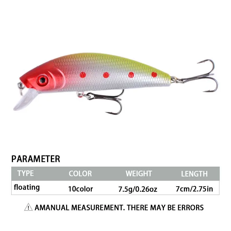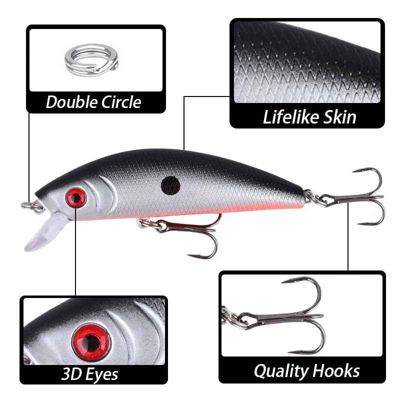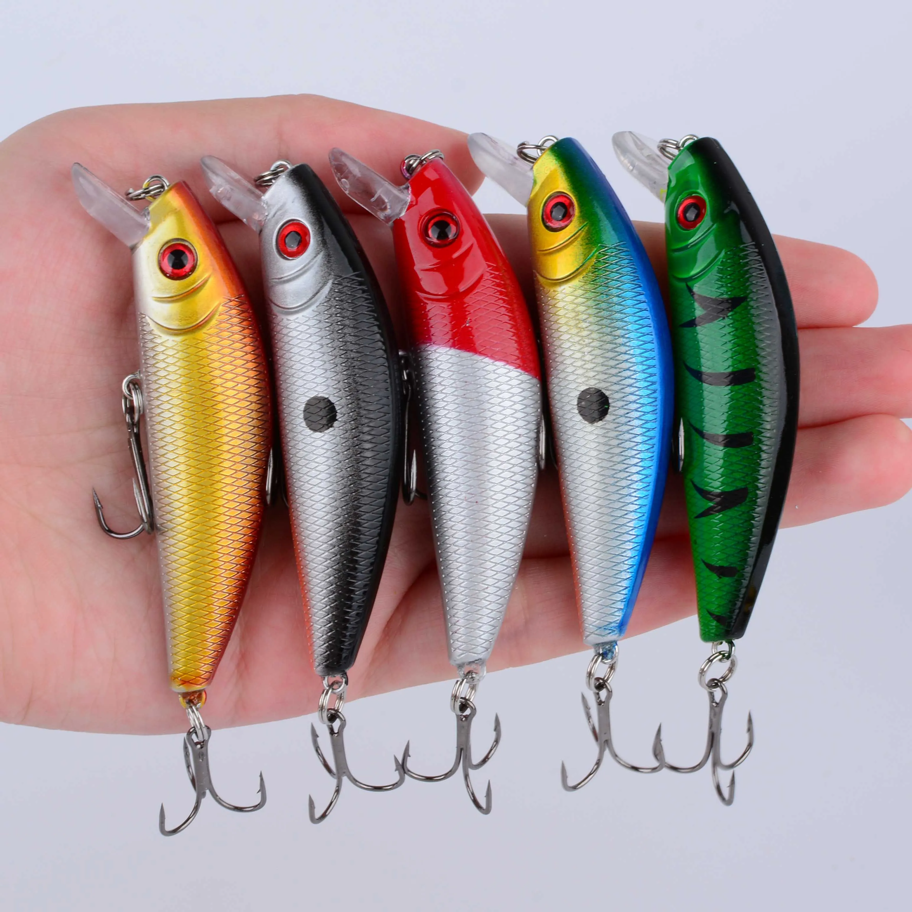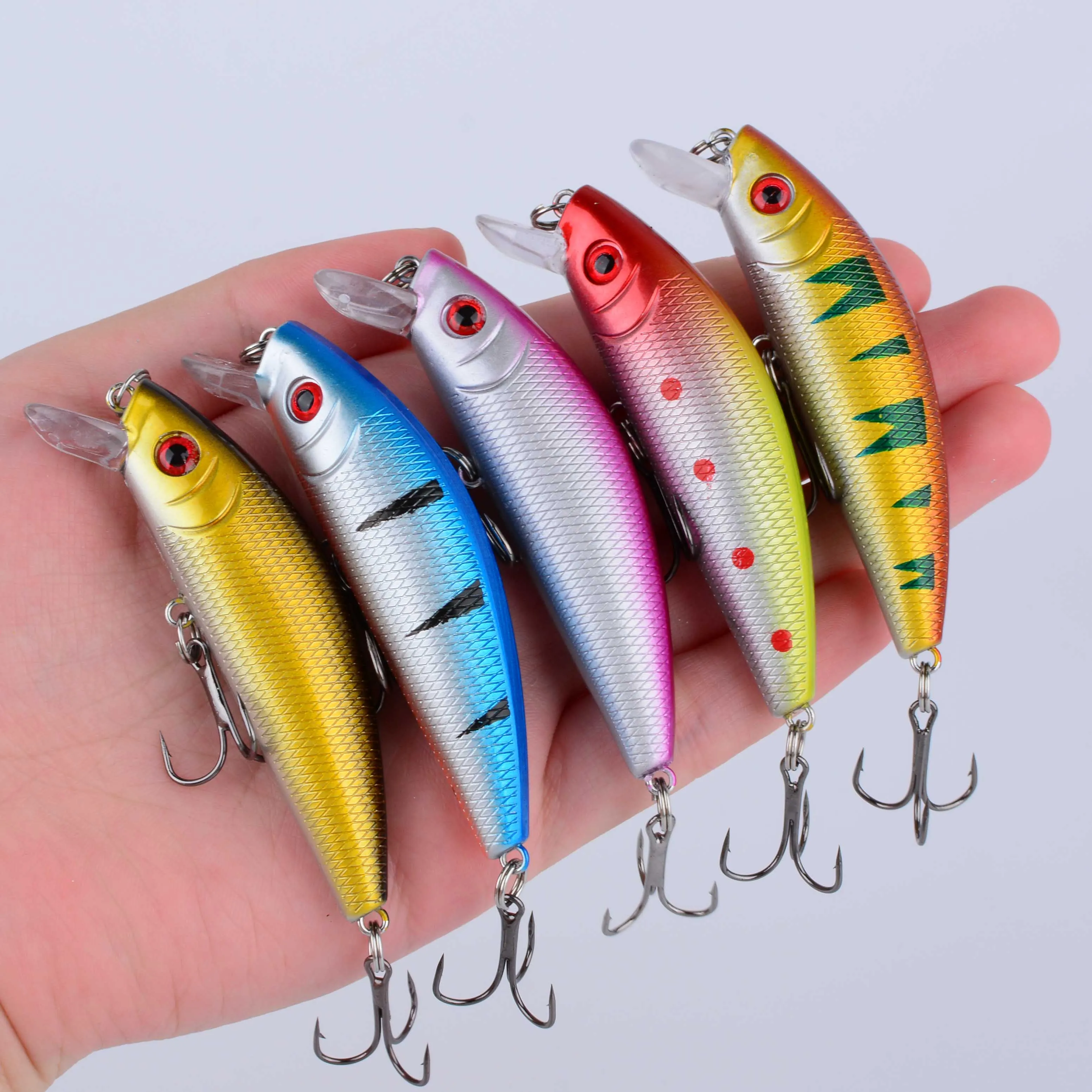 Señuelo de pesca flotante Minnow, ojos 3D, Crankbait Wobbler, cebo duro de plástico Artificial, aparejos de pesca de lubina, SwimBait, 10 Uds.