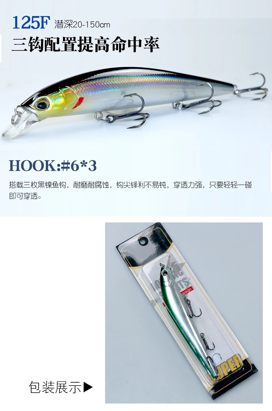 Señuelo de pesca flotante de pececillo, cebo duro Artificial de fundición larga, Wobblers para aparejos de pesca de Lucio, 125mm, 20g