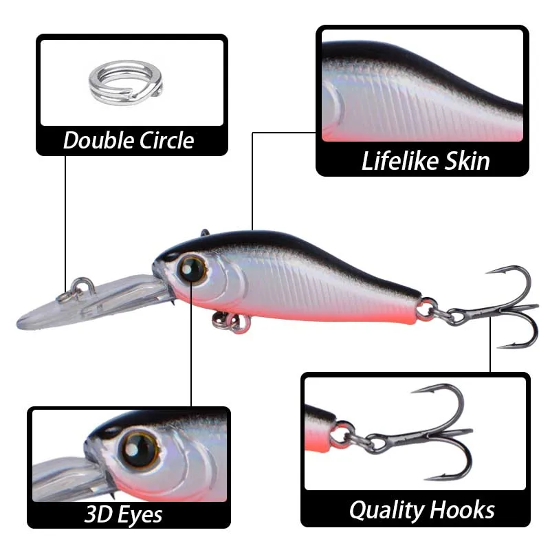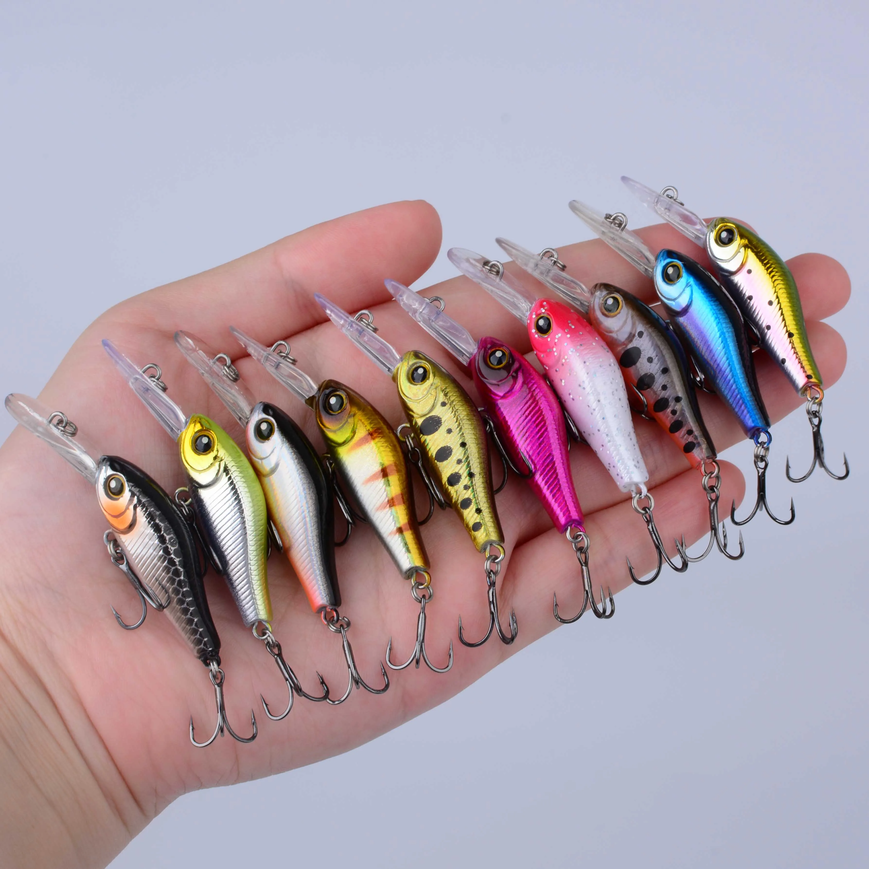 Señuelo de pesca flotante para pececillo, cebo duro para trucha, crankbait, wobblers, aparejos de pesca para lubina, perca, 10 Uds.