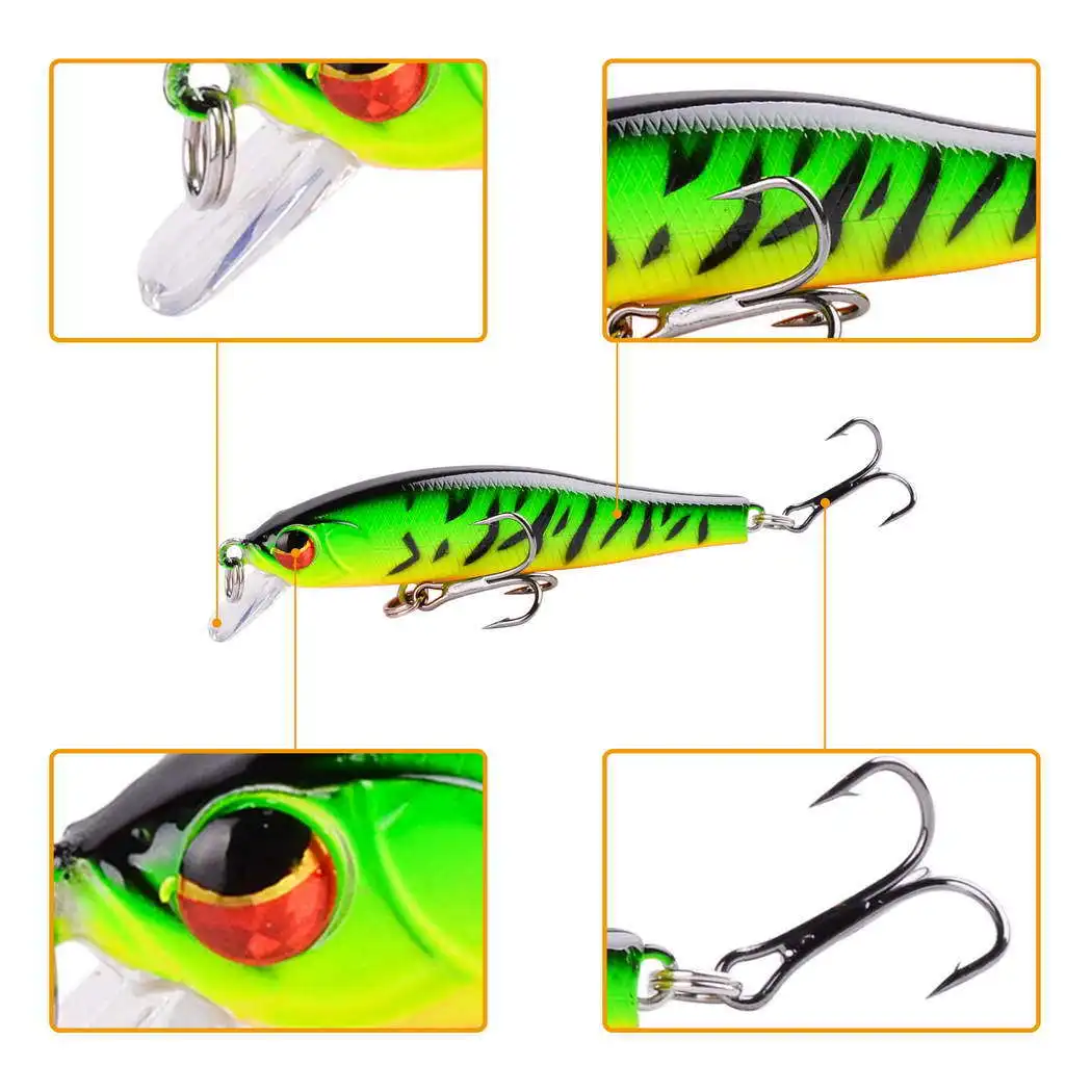 Señuelo de Pesca flotante de pececillo de cristal 3D, 72mm, 6g, Wobblers de agua salada, Jerkbait de curricán para aparejos de Pesca de lubina