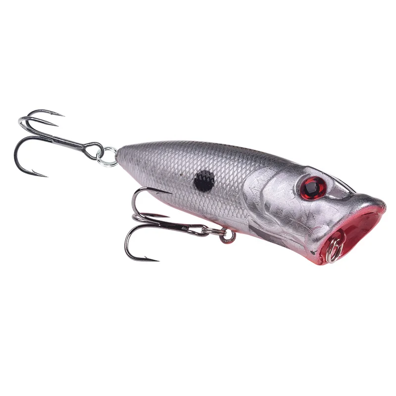 Señuelo de pesca Popper flotante, 70mm, 10g, Wobblers Topwater Isca, cebos duros artificiales con 6 uds.# Anzuelos, aparejos de pesca para Lucio y lubina