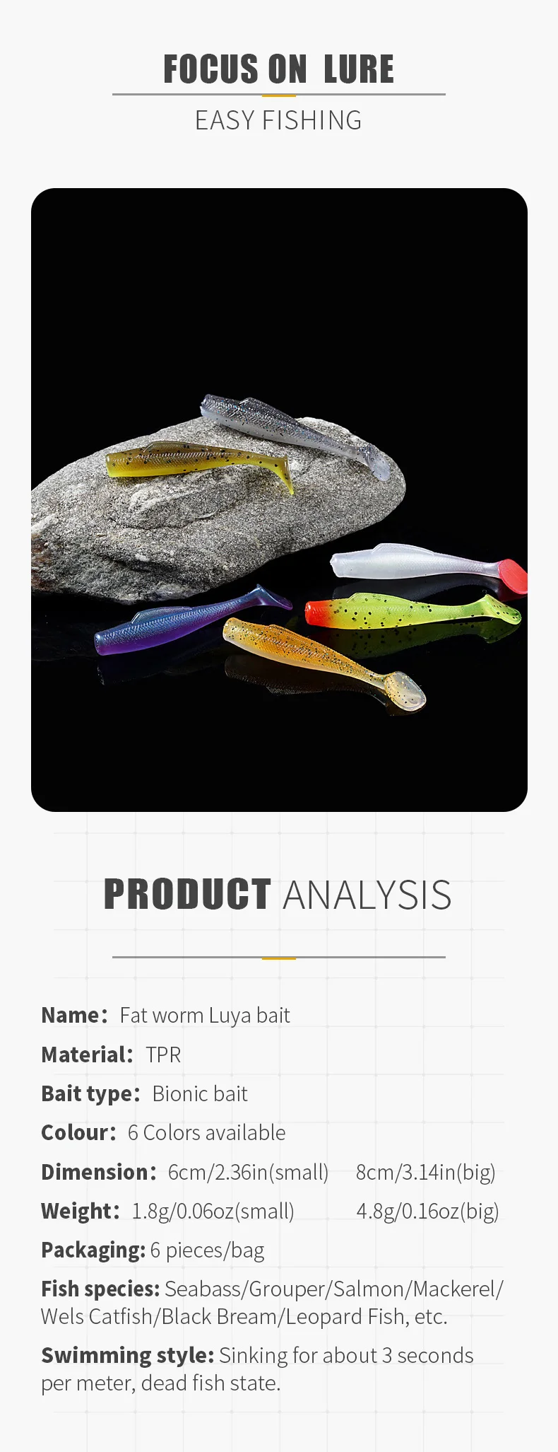 Señuelo de pesca flotante SENSEYE, 6 uds., 1,8g, 4,8g, TPR, plataforma de tiro de caída, aparejo Carolina, cola en T, cebos de gusano, lubina