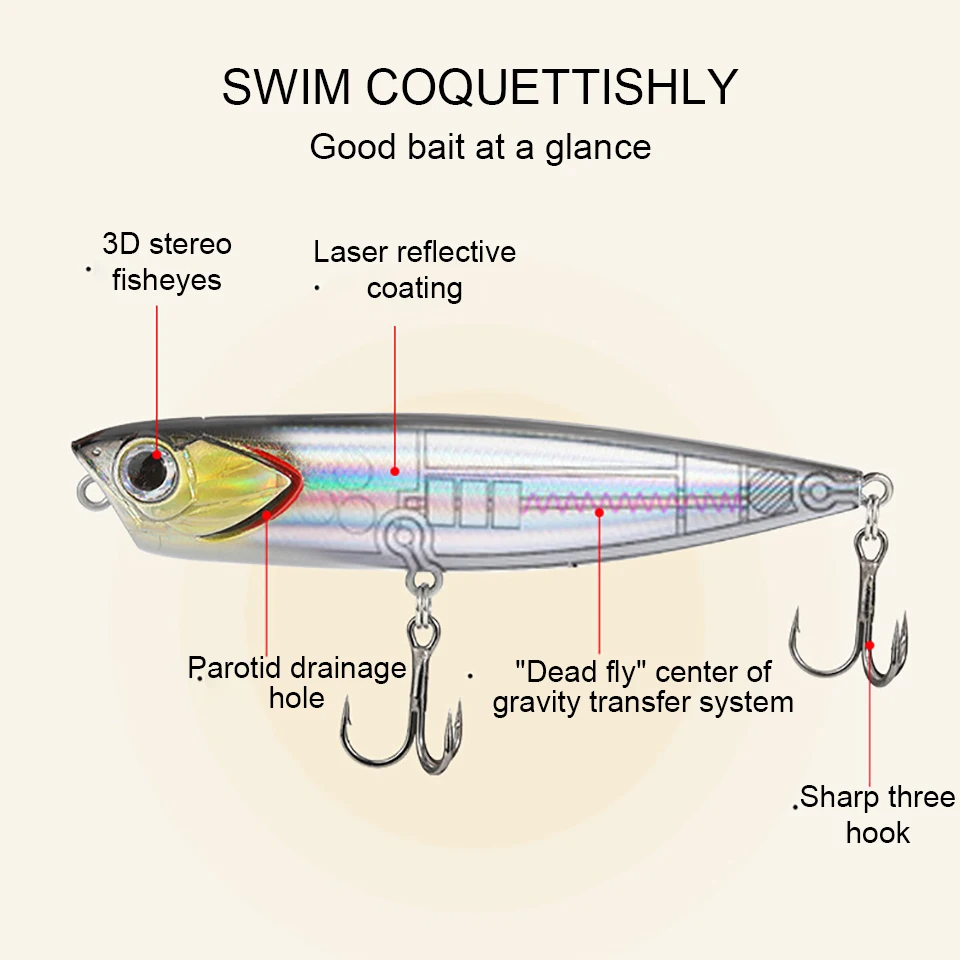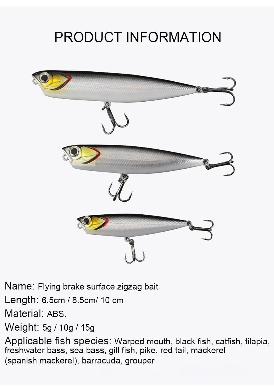 1 piezas 65MM/85MM/100MM, lápiz flotante para Pesca, superficie con forma de Z, señuelo de Pesca Realis, Wobblers para aparejos de Pesca
