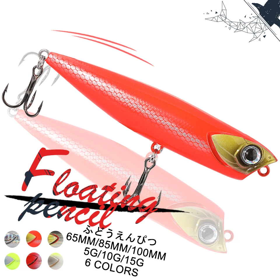 1 piezas 65MM/85MM/100MM, lápiz flotante para Pesca, superficie con forma de Z, señuelo de Pesca Realis, Wobblers para aparejos de Pesca