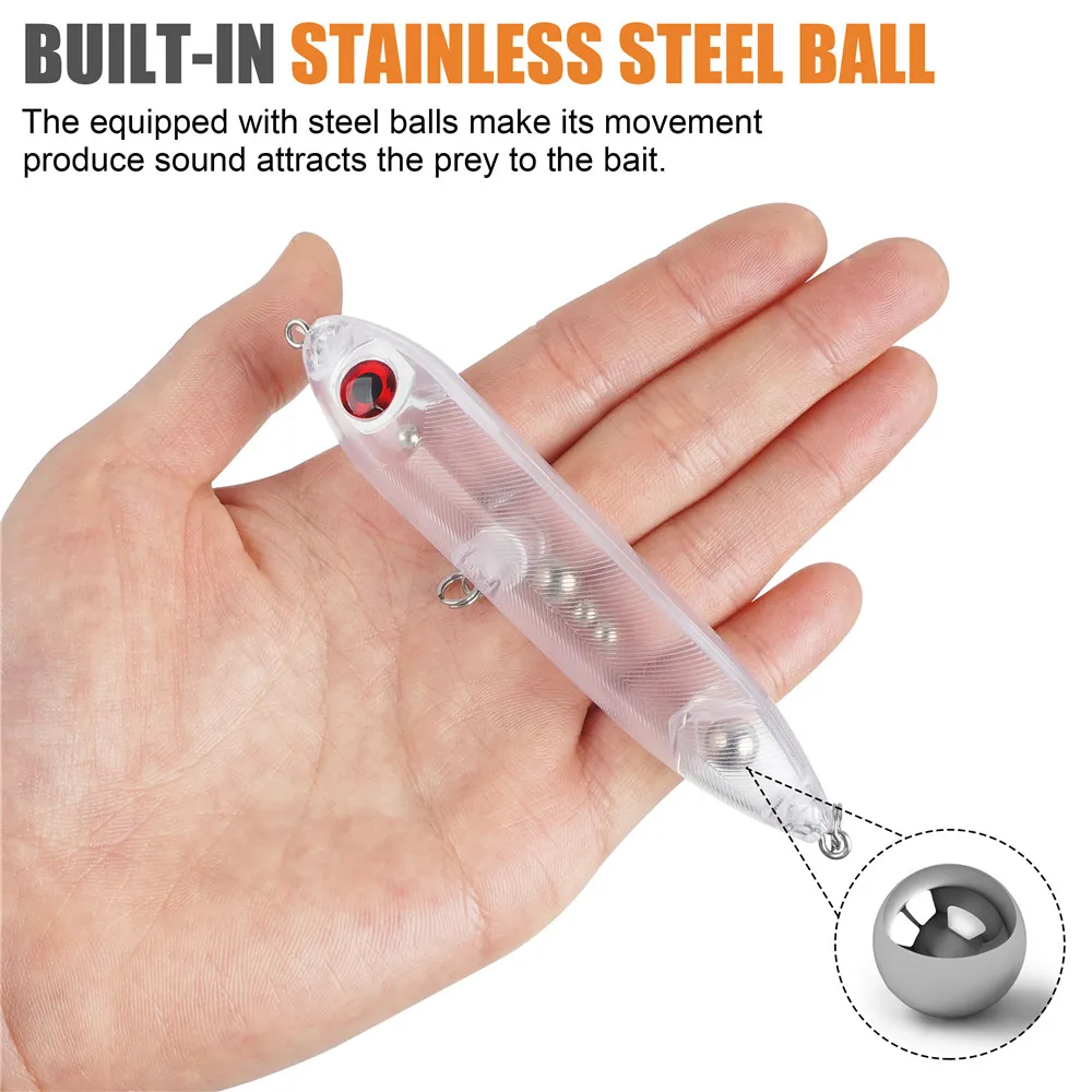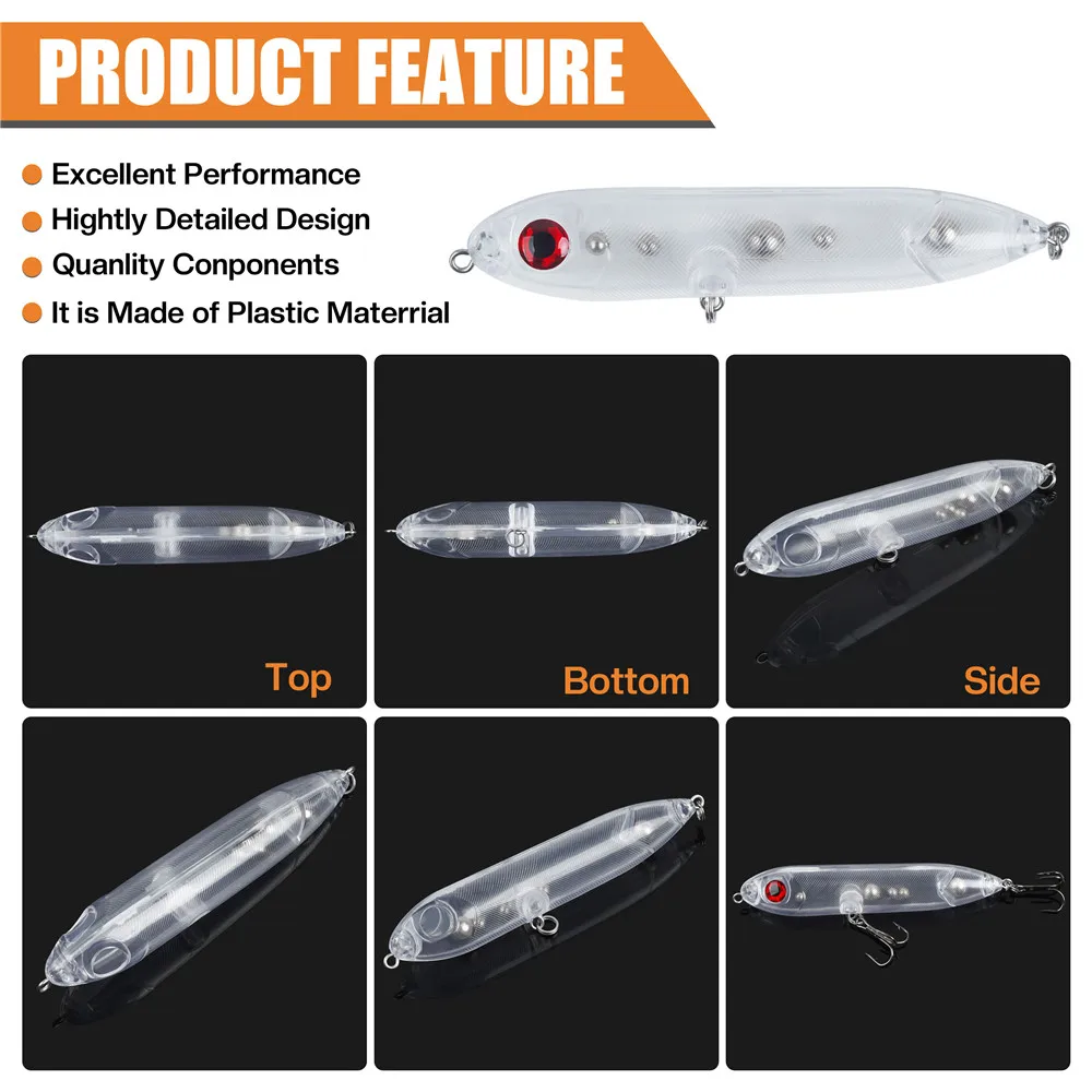 1. El señuelo flotante sin pintar de la línea de traqueteo del bagre está hecho de ABS. Juega un muy buen efecto impermeable, cuerpo de alta flotabilidad no indestructible de 4 ", puede soportar el poder superexplosivo del bagre.