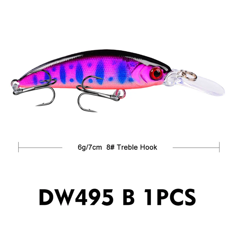 Tipo: señuelo de pesca MinnowPeso: 6GLongitud: 7cmProfundidad de buceo: hundimientoGanchos: equipados con 2 ganchos de calidadAnillos: bicíclicosColor: 9 colores diferentesPez diana: chub pálido, bajo, Pikes, carpa Yellowcheck, perca china, culter TopmouthLista de paquetes:1 señuelo de Pesca,