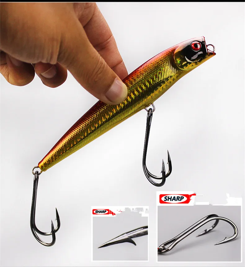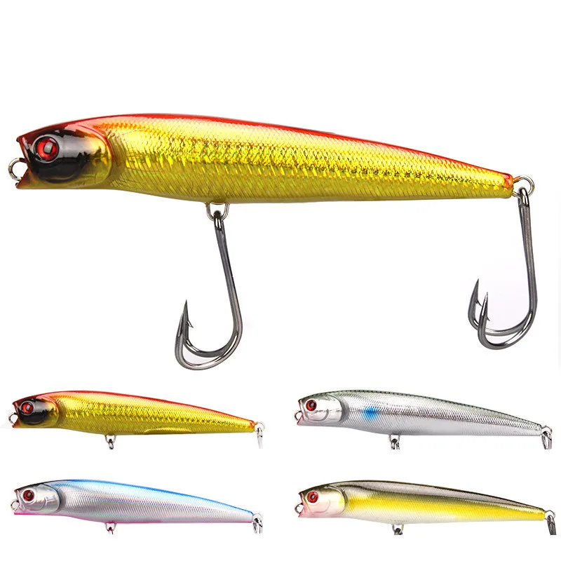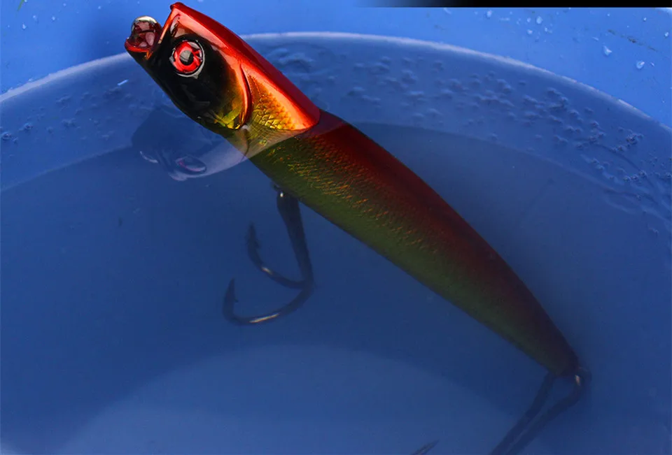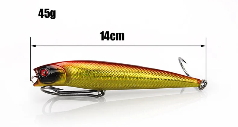Señuelo de pesca con gancho de garra de pollo Popper, 14cm/45g, señuelos artificiales de agua de mar, cebo duro de océano, anzuelo doble, flotador Poper, 1 pieza en oferta