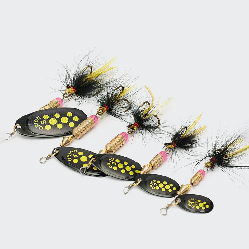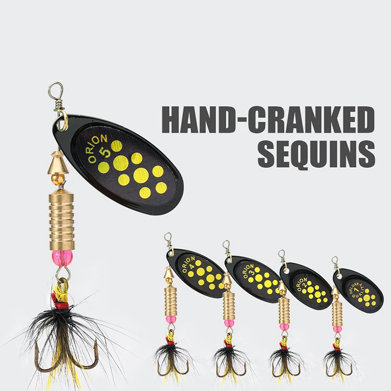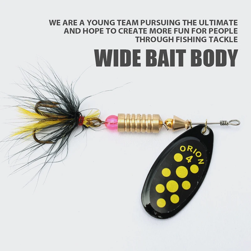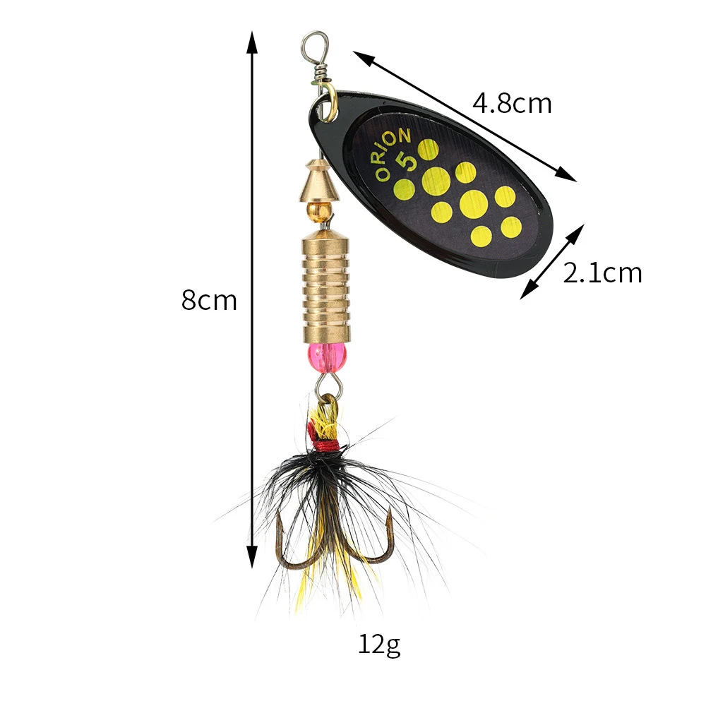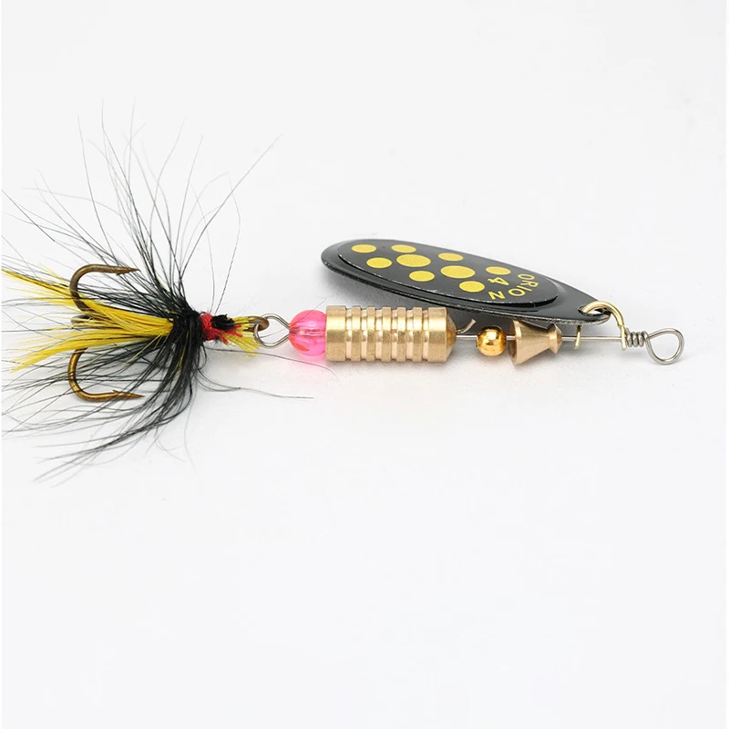 Señuelo de Pesca giratorio, 1 Uds., 3g/4g/7g/9g/12g, cuchara con lentejuelas, cebo duro de Metal, Wobblers, Pesca de lubina con anzuelos de plumas