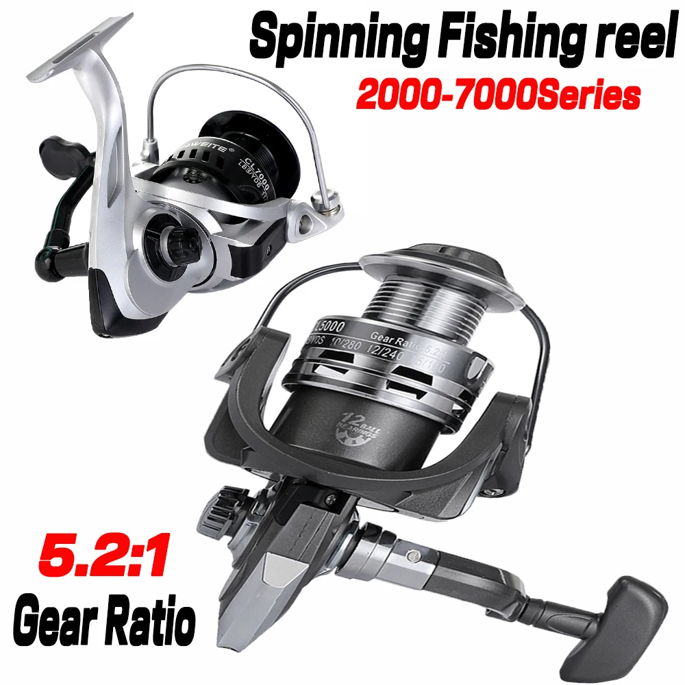 Señuelo de pesca giratorio, carrete de arrastre máximo de 10KG, relación de transmisión 5,2: 1, 2000/3000/4000/5000 para perca, lubina y Lucio para todas las aguas