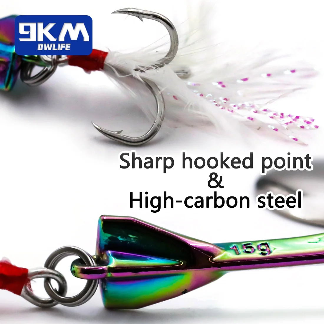 Múltiples opciones: para diferentes tamaños de peces, la plantilla de pesca de metal tiene 15G ~ 40G para elegir. Disponible en diferentes pesos para adaptarse a diferentes necesidades de fundición y profundidades de buceo. Se puede utilizar en agua dulce y salada para soportar el desgaste y la corrosión.